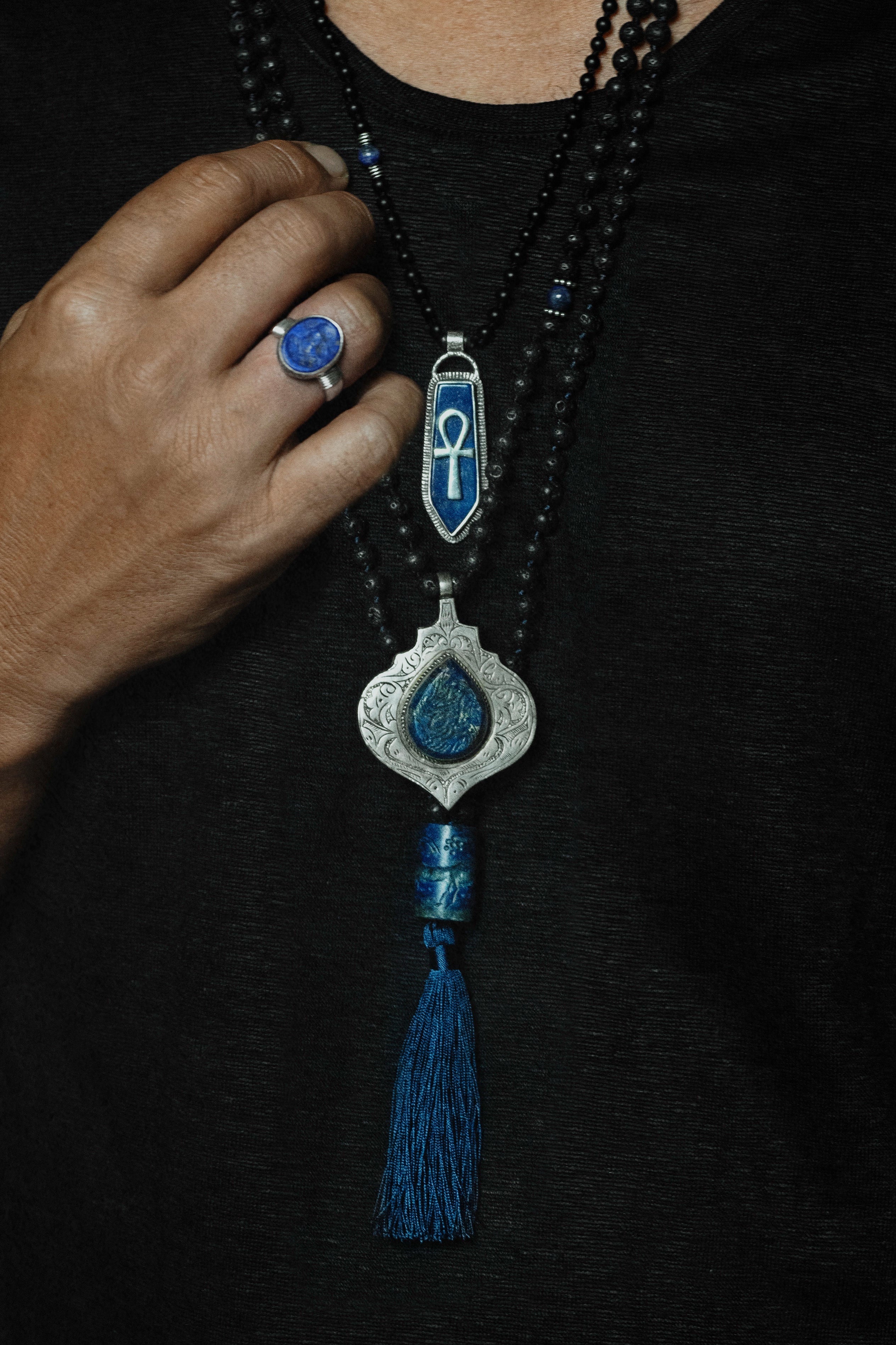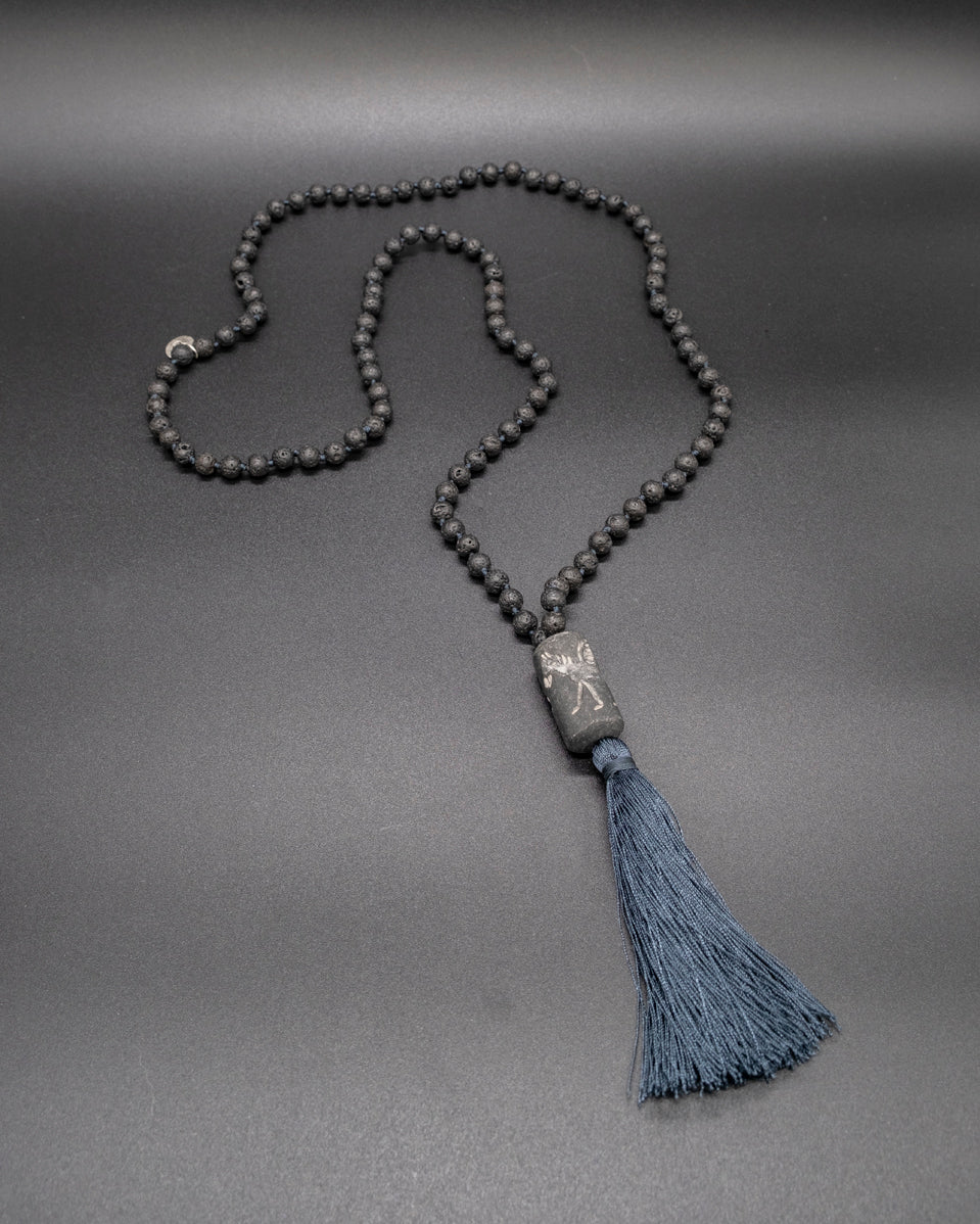 Our Blue Warrior Lava Stamp 108 is not just a piece of jewelry, but a testament to the power of self-belief and inner strength. This hand-crafted Mala features 108 lava beads and a striking blue warrior guru bead, making it a true work of art.