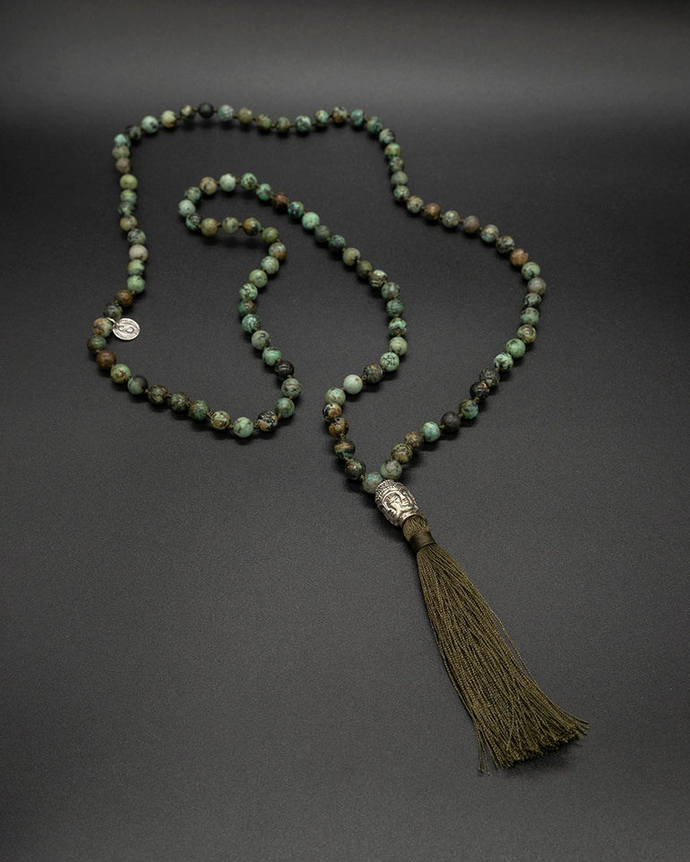 Connect with ancient wisdom through our African Turquoise 108 Mala.