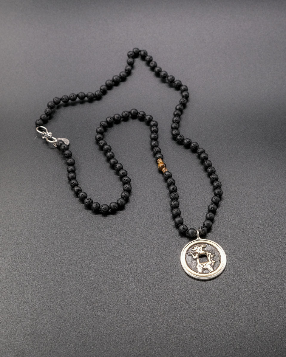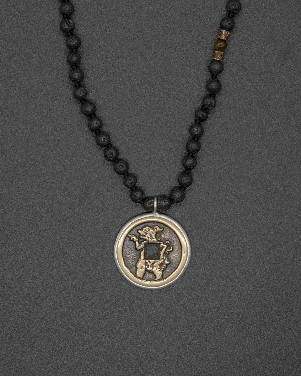 Let the mastery of smooth communication be with you at all times. Introducing the amazing pis Sangut talisman, a Balinese vintage piece woven with pure magic. Sangut is a Punakawan figure in the Balinese puppet tradition and known to be very skilled with communication. This coin is also paired with a hand-knotted lava stone, tiger eye & brass chain and known to bring you luck when it comes to arguments. Popular amongst attorneys and people who depend on communication skills for their daily work, this talisman will help you win any and all debates or arguments that come your way.