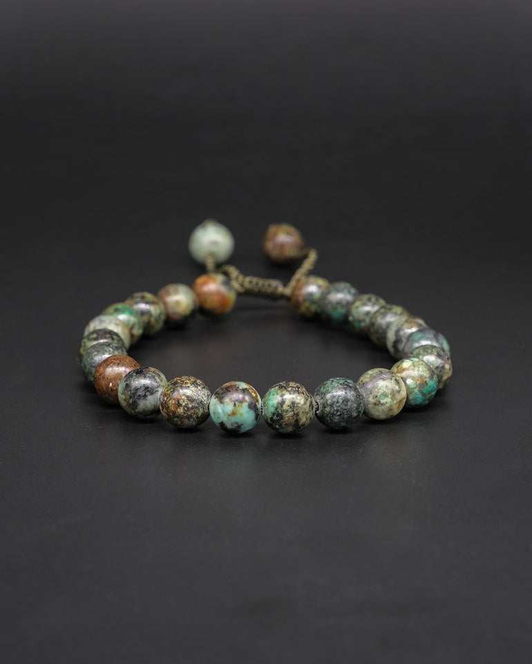 This vibrant green African turquoise bracelet is a powerful tool for healing and wellness. Meticulously chosen for their unique properties, these stones are said to promote inner calm and balance, while stimulating creativity and self-expression.