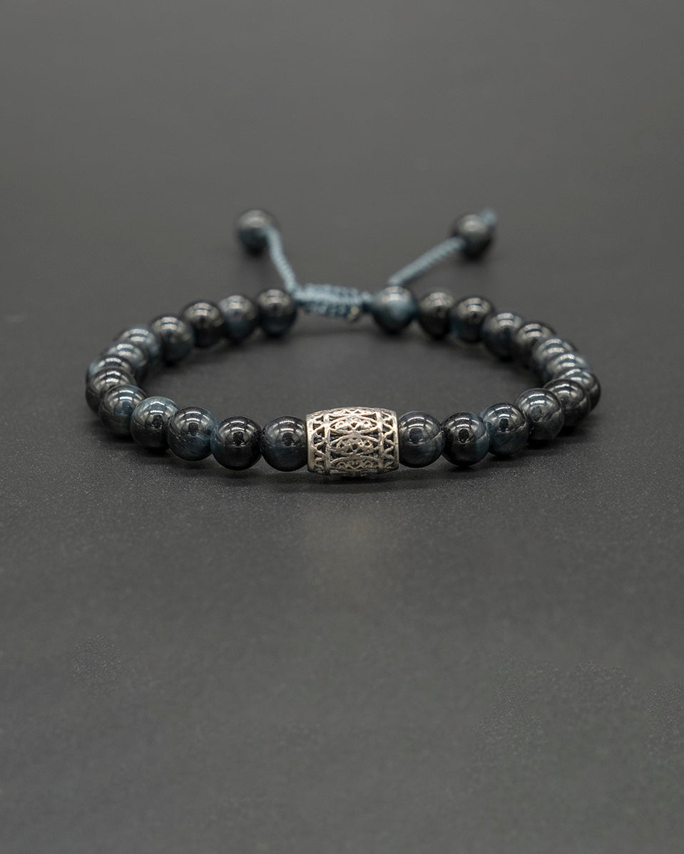 This bracelet is crafted with beautiful blue tiger eye stones with silver tube bead. We believe in the magical properties of gemstones and the special connection they bring to those who wear them. Our blue tiger eye bracelet is a testament to that belief. Richly imbued with the healing energy of the tiger eye stone, this exquisite accessory is an indulgence that invites you to explore your inner strength.