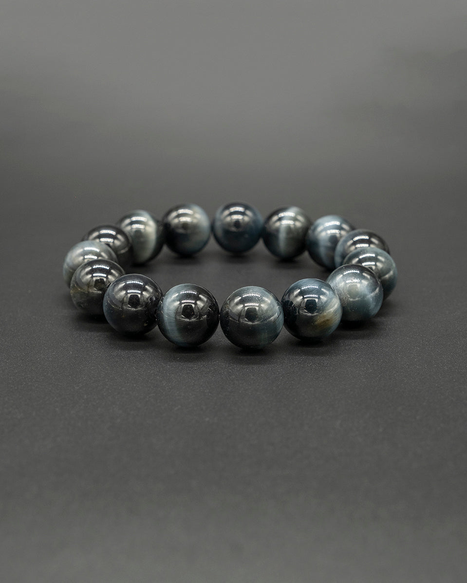 This unique blue tiger eye bead stretch bracelet the perfect accessory for any occasion. Indulge in the beauty of nature with the calming blue hues of this stunning stone, which is said to boost self-confidence and strengthen intuition.