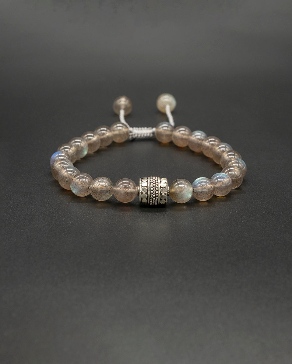 Crafted with an array of labradorite beads and a beautiful silver tube accent, this handmade bracelet is the perfect way to add a natural touch of elegance.