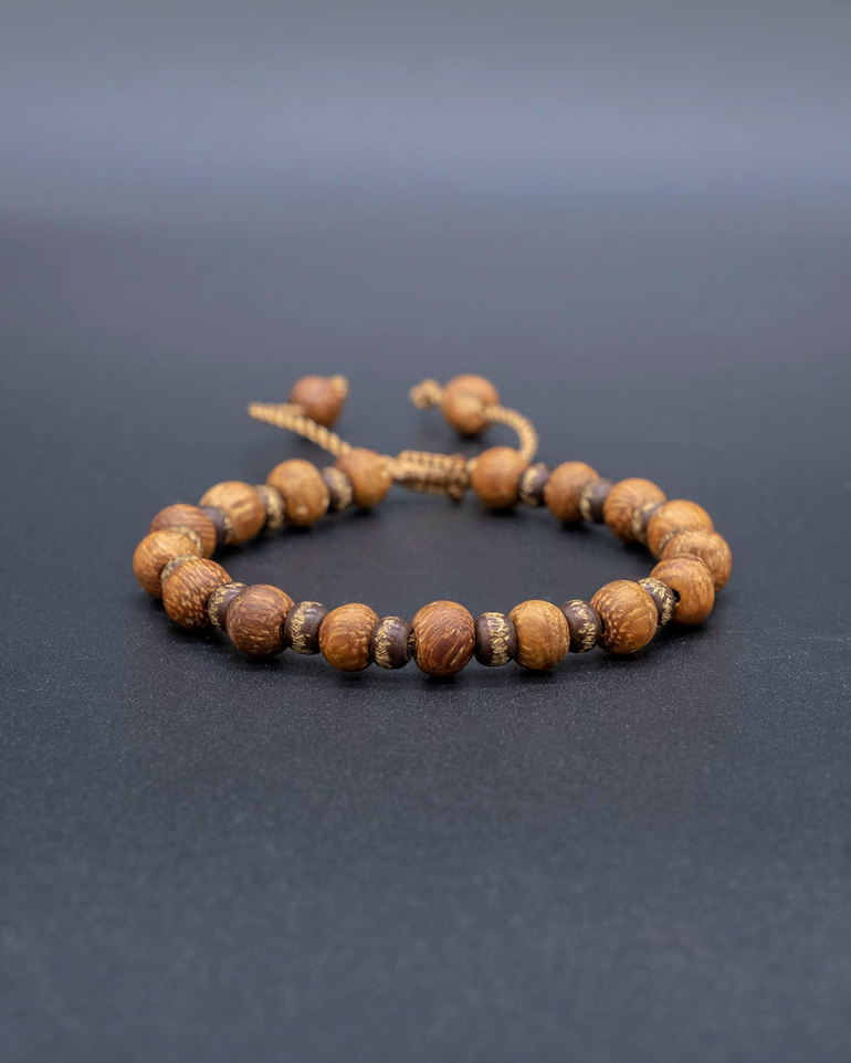 Crafted with lovely moringa wood beads and shiny brass accents, this handmade bracelet is the perfect way to add a natural touch of elegance. In Bali, Moringa wood is known to protect again negative energy. This bracelet is adjustable and one size fits all.