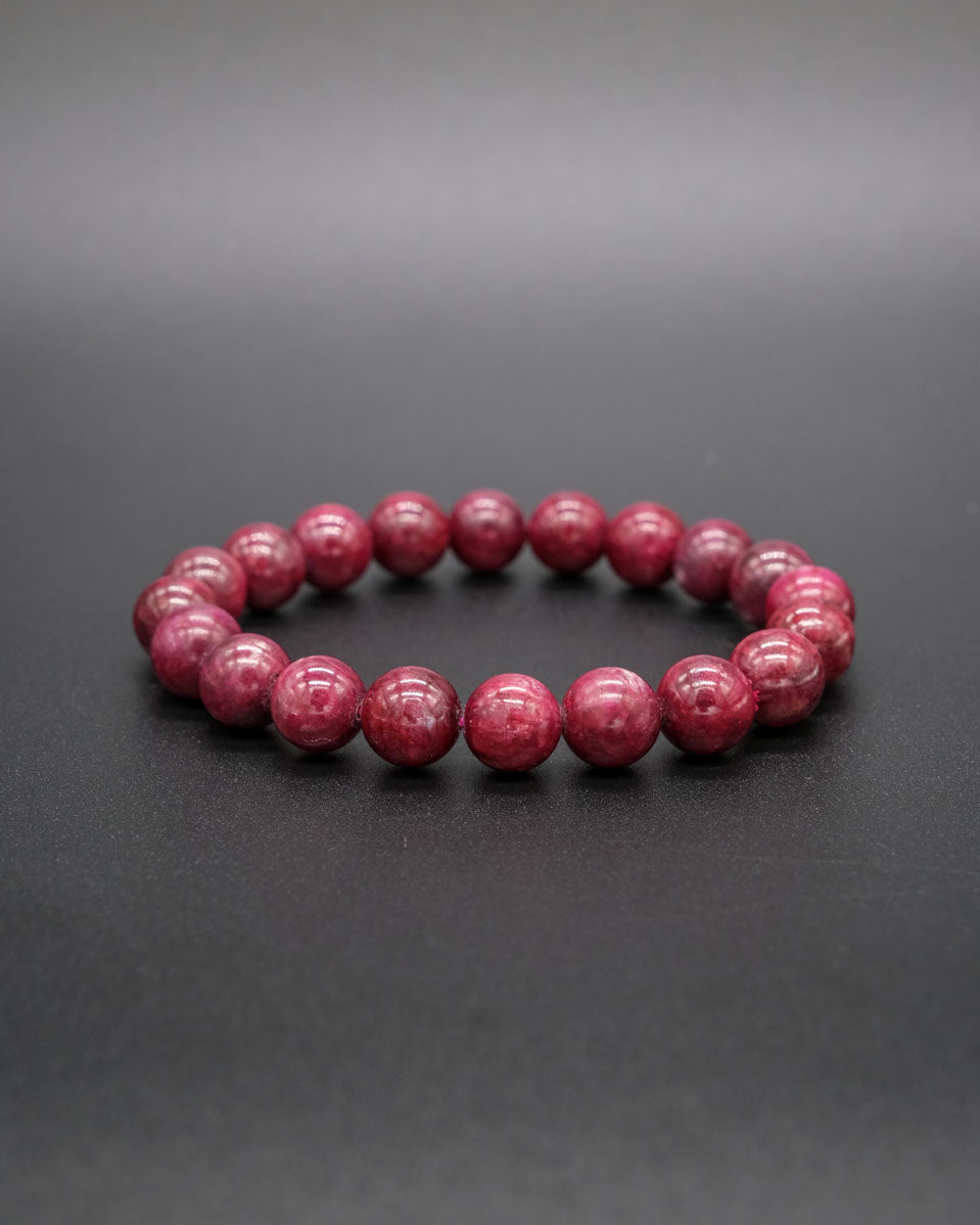 There's nothing quite like the allure of a Burmese ruby, and our 10mm polished ruby bead bracelet is proof of that. Each bead has been crafted to perfection and polished to achieve a stunning shine.