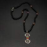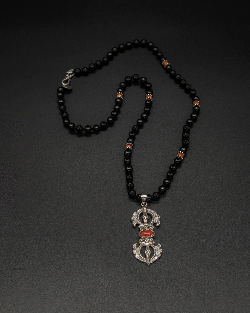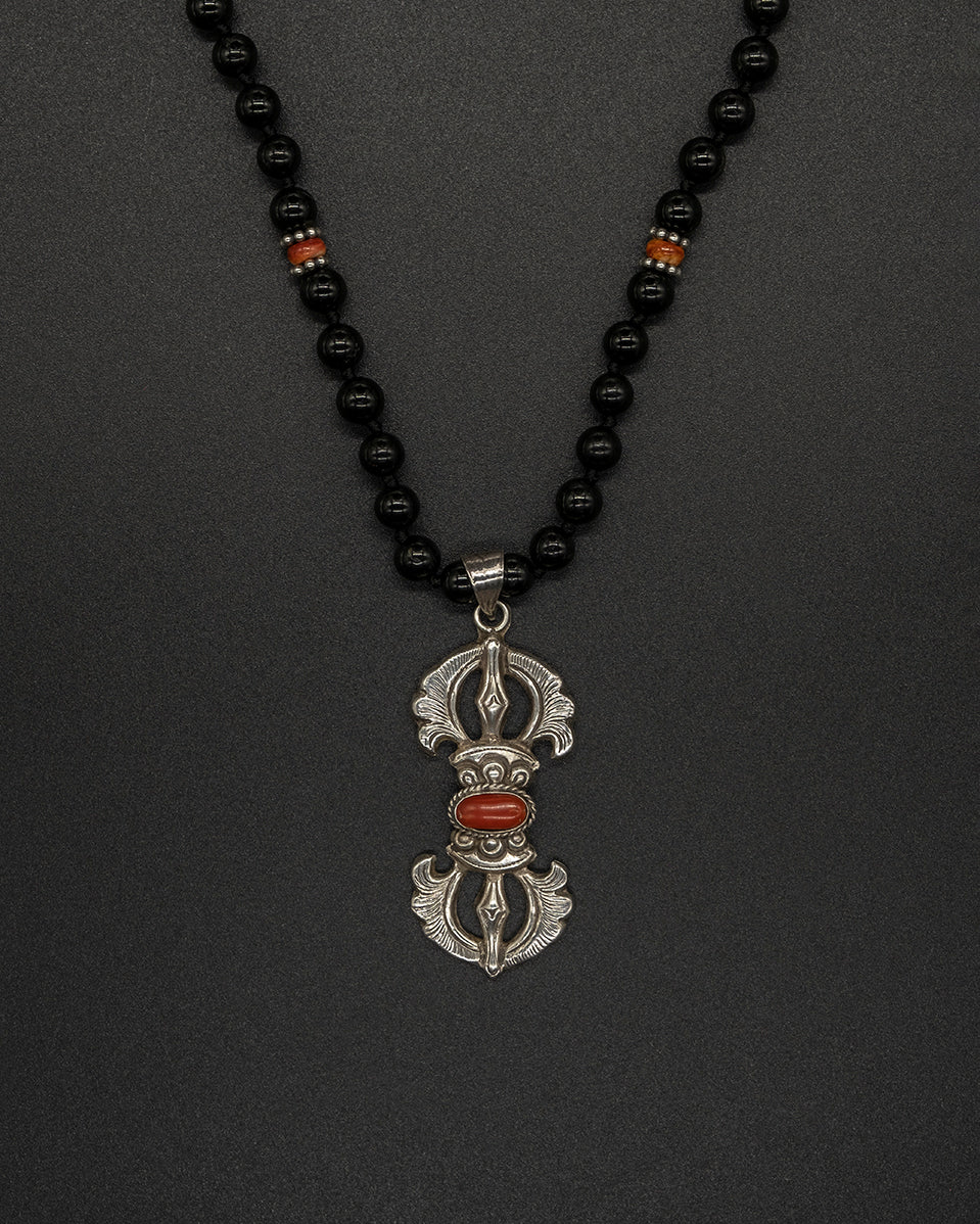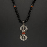Silver Coral Vajra Black Tourmaline Silver Sumba Beads Chain — a powerful statement piece featuring a coral vajra charm paired with grounding black tourmaline. Finished with traditional silver Sumba beads, it blends protection, strength, and timeless artisan beauty.