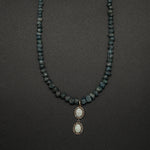 A striking blend of raw blue diamond and luminous white opal, wrapped in sleek silver with subtle diamond highlights. Natural texture meets refined sparkle, creating a piece that feels both elemental and elegant—glowing with soft color and understated luxury.