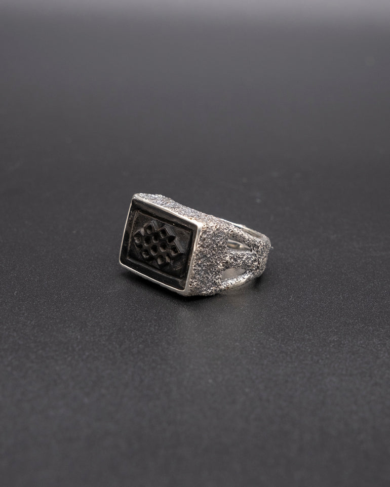 In the light of the stars, feel the interconnectedness of the cosmos inside you with this handmade sterling silver ring with carved buffalo horn endless knot! Its intricate pattern is a reminder of your eternal connection with the universe.