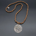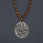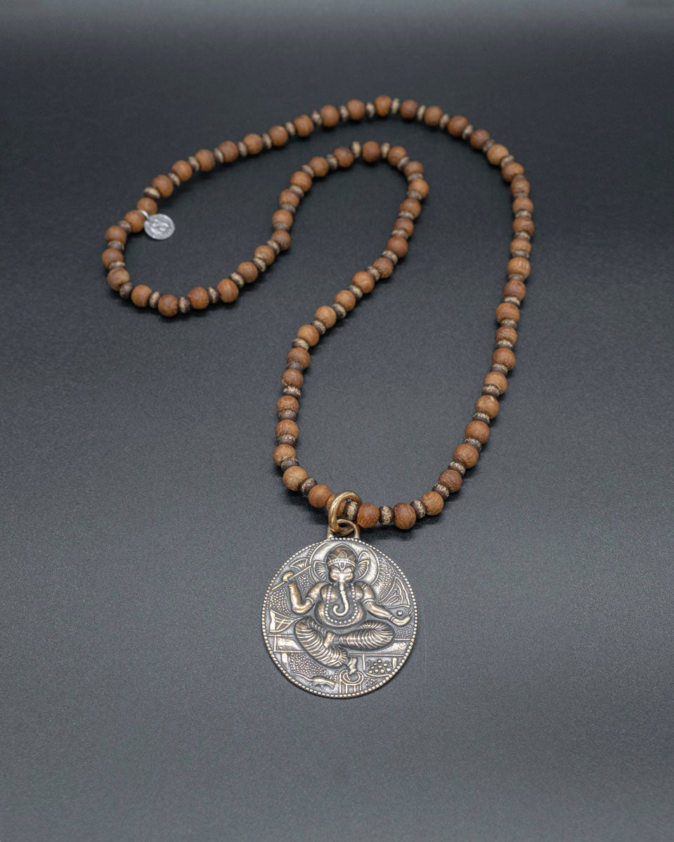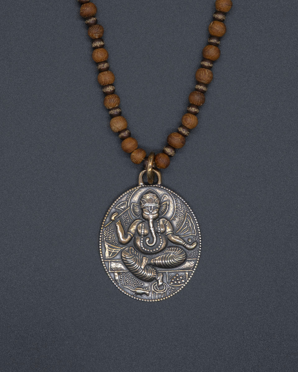 In Hindu tradition, Ganesha is worshipped as the remover of obstacles and the harbinger of good fortune and success. This elegant and intricately designed pendant and necklace ensemble is crafted to perfection by artisans who have a profound understanding of the ancient art of jewelry-making. This bronze Ganesha pendant pairs perfectly with a Lava stone.