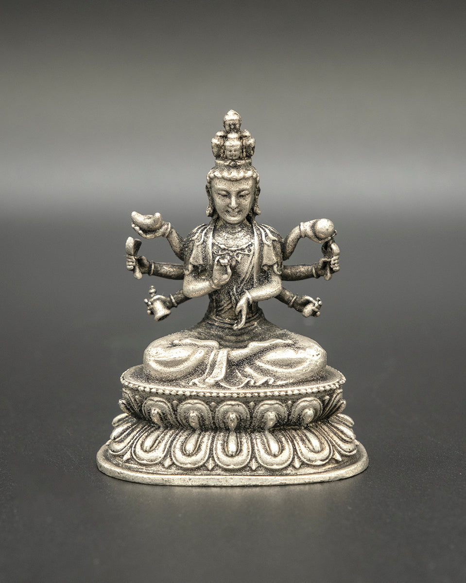Bring a sense of peace and empowerment into your home with this charming vintage brass Goddess Tara statue. This beautiful rendition of the goddess of compassion and protection, depicted in a mudra pose, embodies grace and strength in Hindu and Buddhist lore. Elevate your space with the serene presence of Tara.