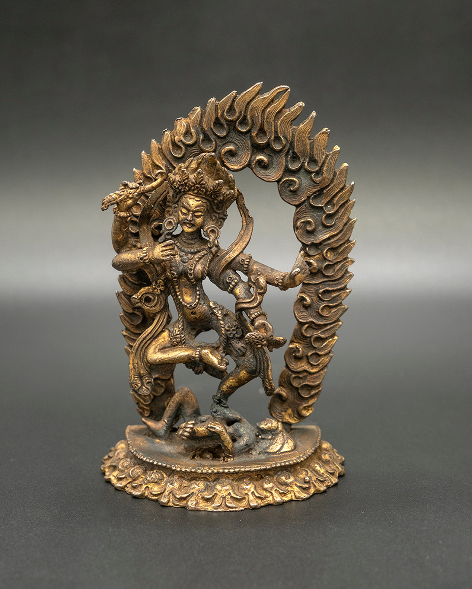 Transport yourself to the spiritual realm with our vintage brass Heruka statue. This beautifully detailed piece is a nod to the rich history and symbolism of Buddhism, with Heruka being one of the most beloved deities in the Buddhist pantheon. Bring a touch of serenity and elegance to your surroundings with this timeless work of art.