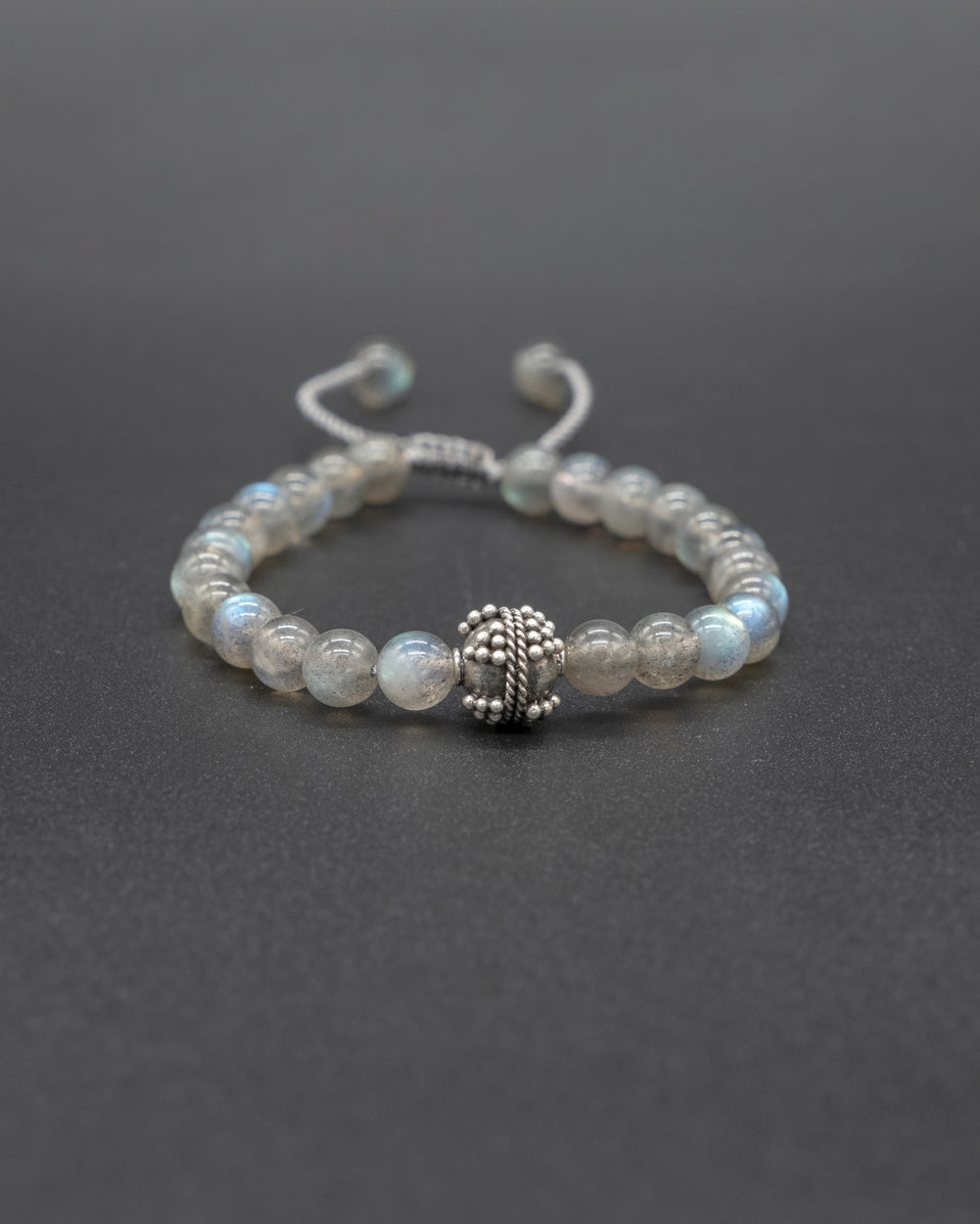 Crafted with an array of labradorite beads and a beautiful silver crown accent, this handmade bracelet is the perfect way to add a natural touch of elegance.
