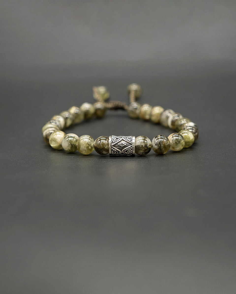 Adjustable bracelet with green Lepidolite stones and a sleek silver tube—fresh, grounding, and elegant for everyday wear.
