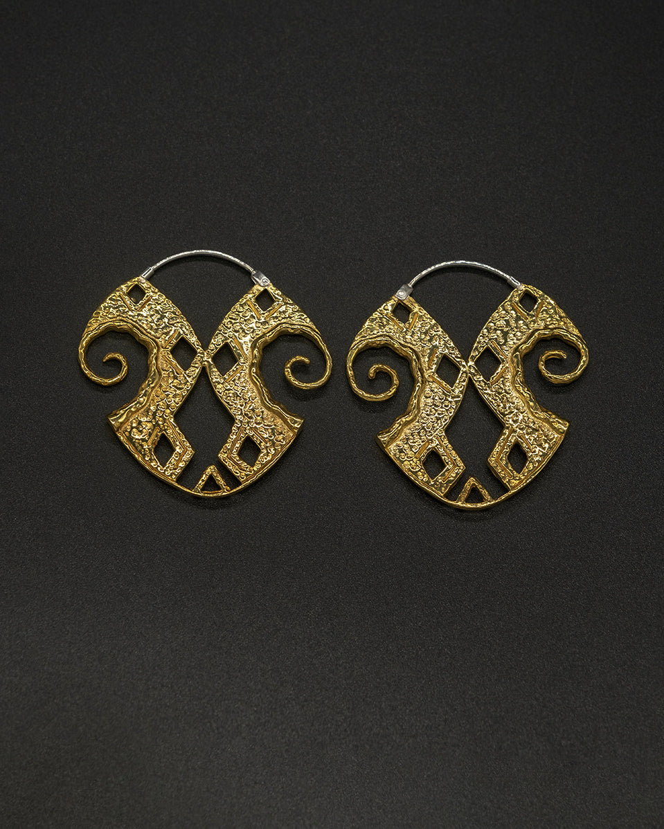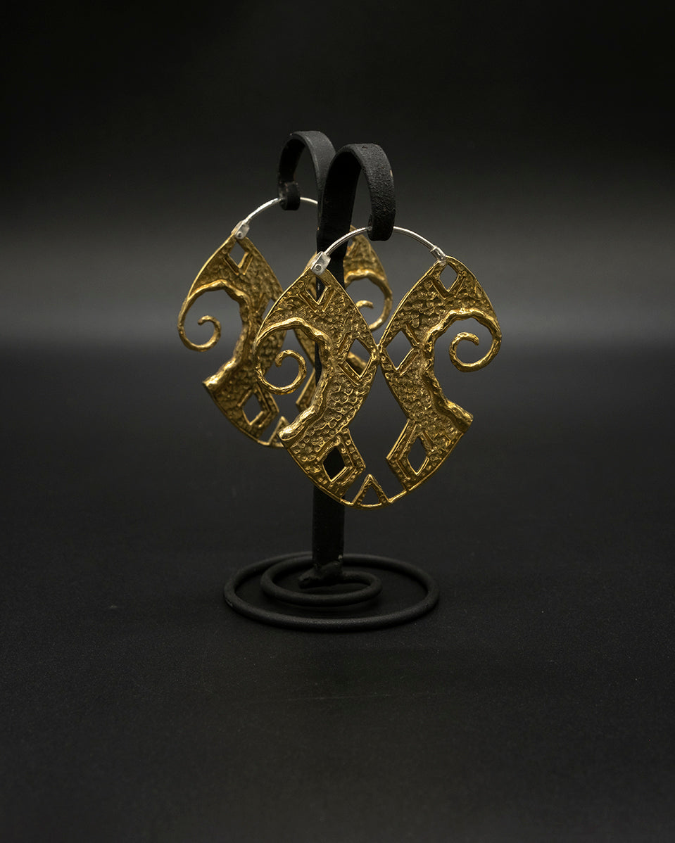 Handcrafted brass earrings inspired by the traditional Mamuli form, symbolizing heritage and femininity. Featuring a warm golden tone and bold, timeless shape, each piece reflects skilled artisanal craftsmanship and cultural significance.