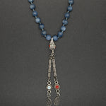 Blue Kyanite 108 Mala with an 8 cm Blue and Red Enameled Tassel — a vibrant piece that embodies alignment and clarity. The soothing energy of blue kyanite promotes balance and communication, while the colorful enameled tassel adds a touch of artistic charm to this elegant, non-silver tassel mala.