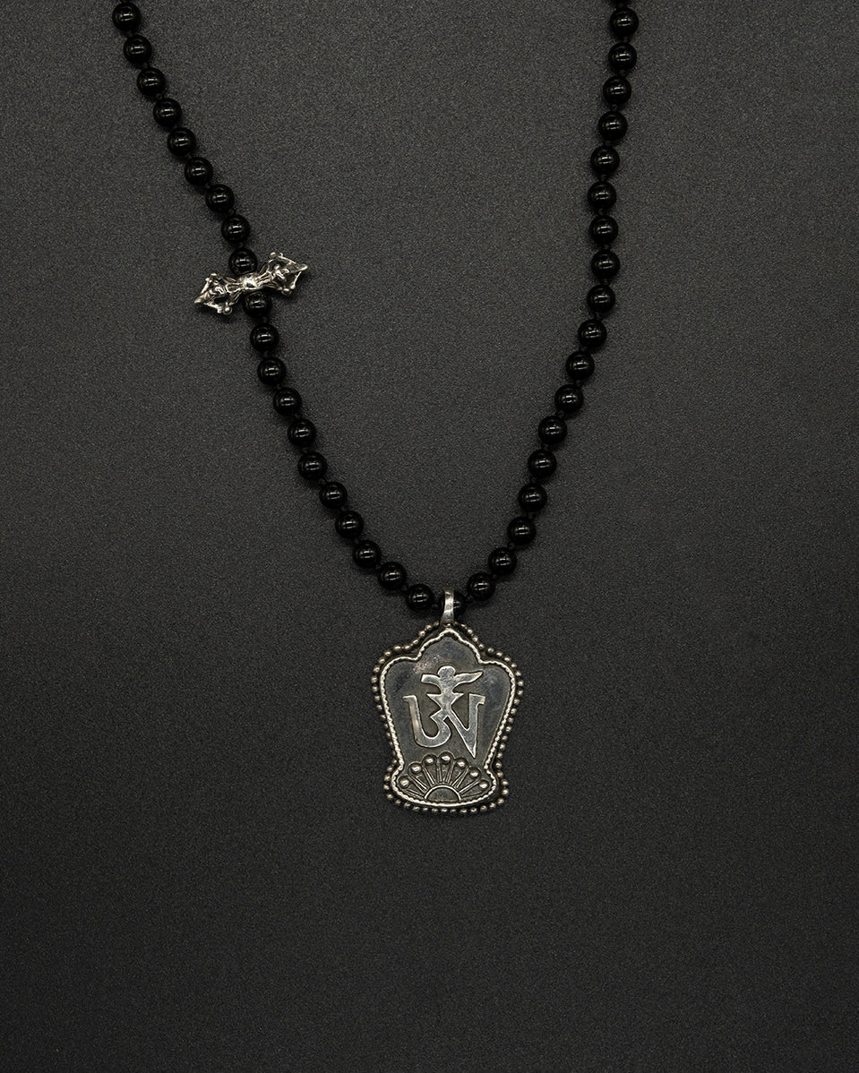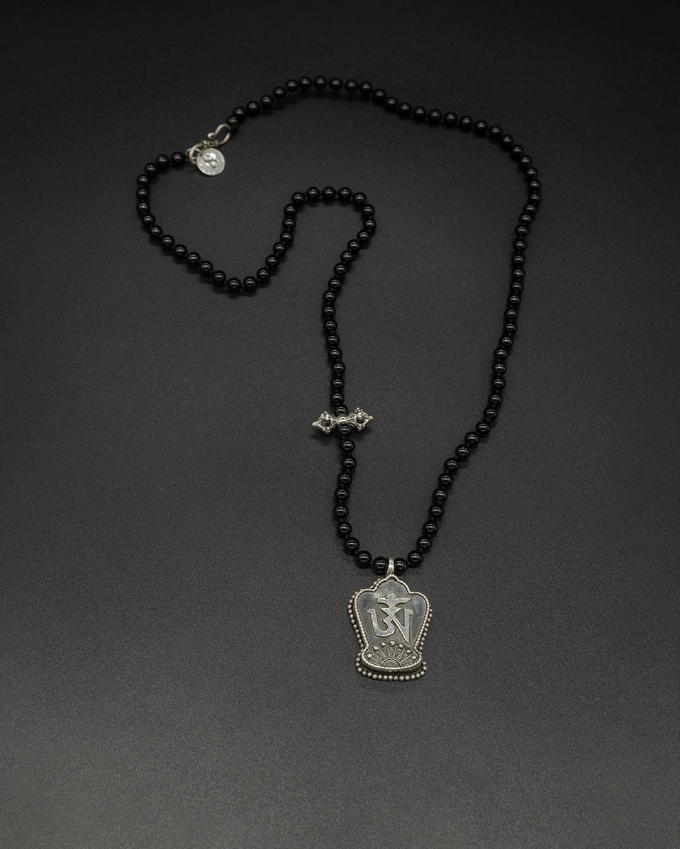 A meaningful chain featuring the Tibetan ॐ symbol combined with a vajra design and natural black tourmaline. Black tourmaline is known as a powerful protective stone, believed to absorb negative energy and support grounding and balance. Simple, symbolic, and suitable for daily wear or spiritual practice.