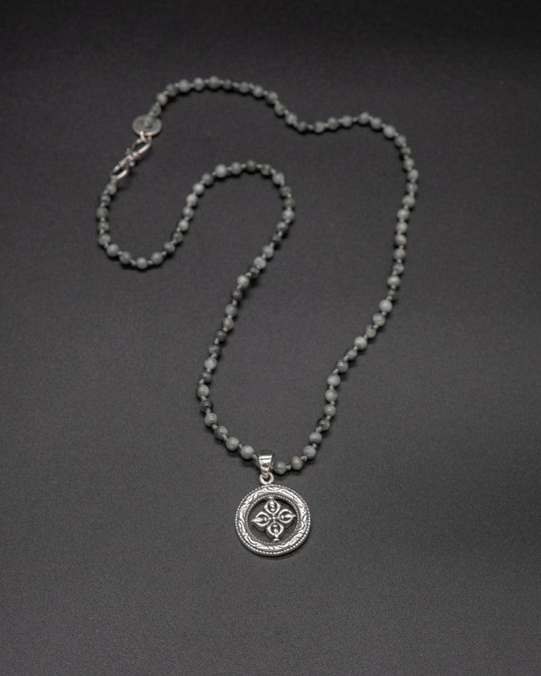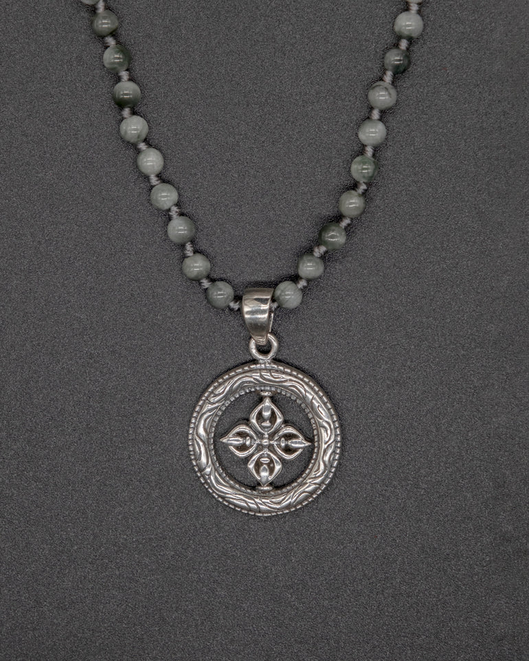 A unique sterling silver turning star pendant, symbolizing guidance and inner strength. Paired with a hand-knotted eagle’s eye stone chain, this piece radiates clarity, focus, and protection—blending celestial beauty with grounded energy.