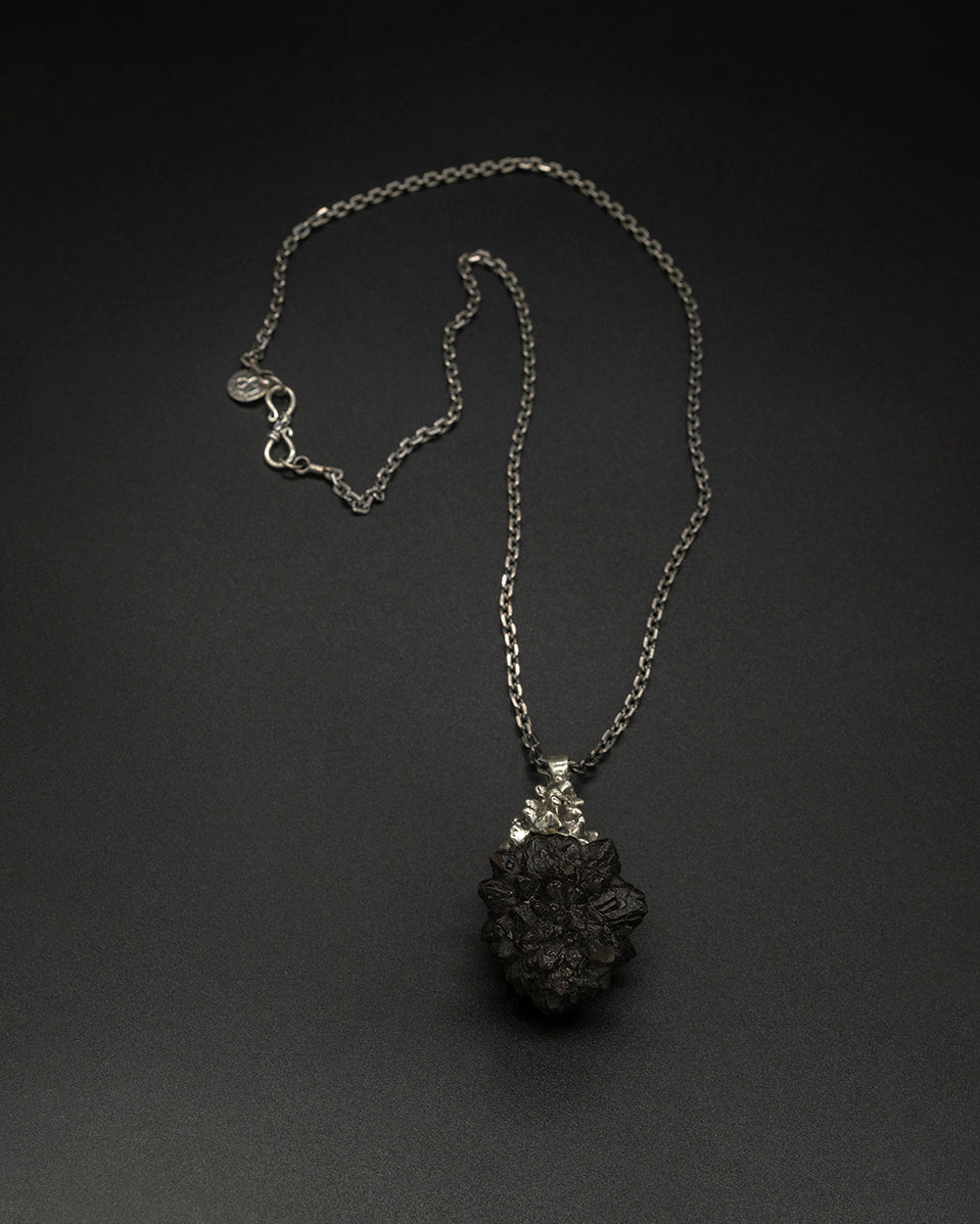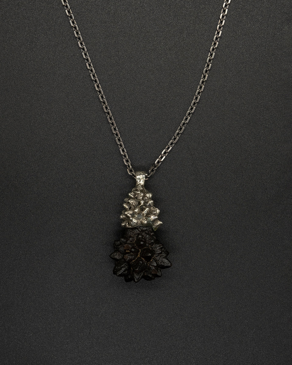Handmade necklace featuring natural Limonite stone with bold silver spike accents, paired with a silver chain. Raw, earthy texture meets a strong tribal edge, making it a unique everyday statement piece.