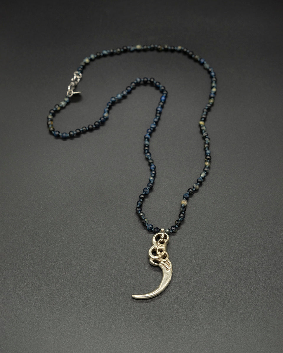 Bring a strong accent to your look with this vintage dagger pendant. Designed with a distinctive dagger form, it is paired with a blue tiger eye chain showcasing deep blue hues and natural luster.
