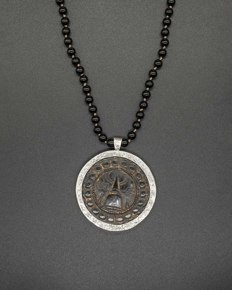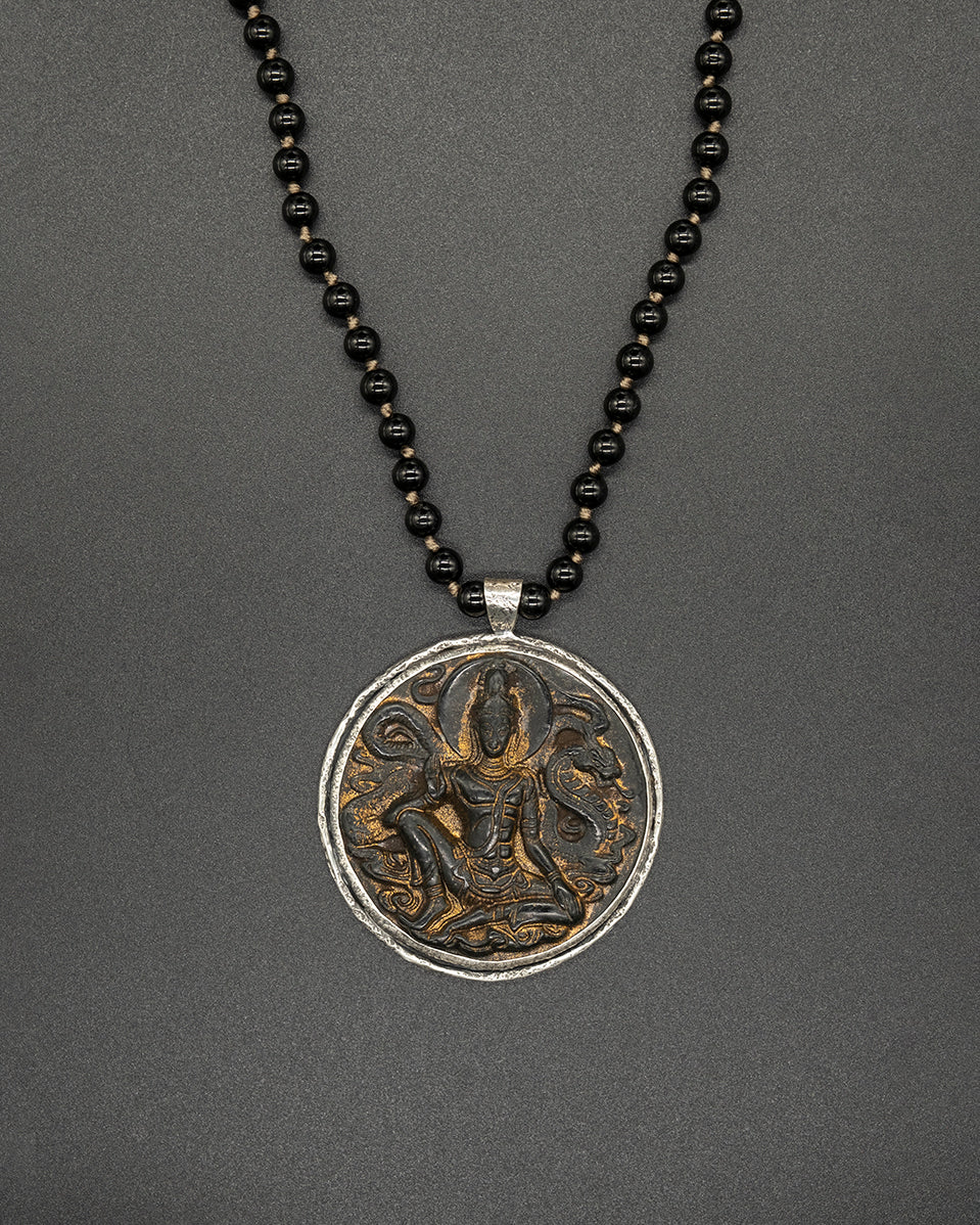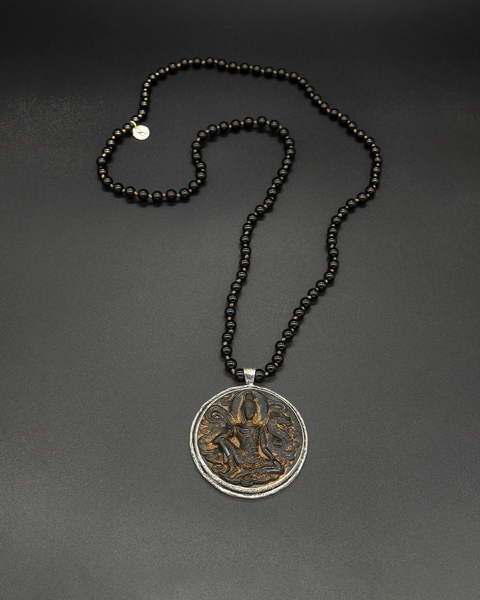 A silver Janguli Goddess pendant paired with a black tourmaline chain. Janguli, revered as a protector goddess, symbolizes healing and protection, while black tourmaline is known for grounding and shielding energy. A powerful, spiritual piece with ancient strength.