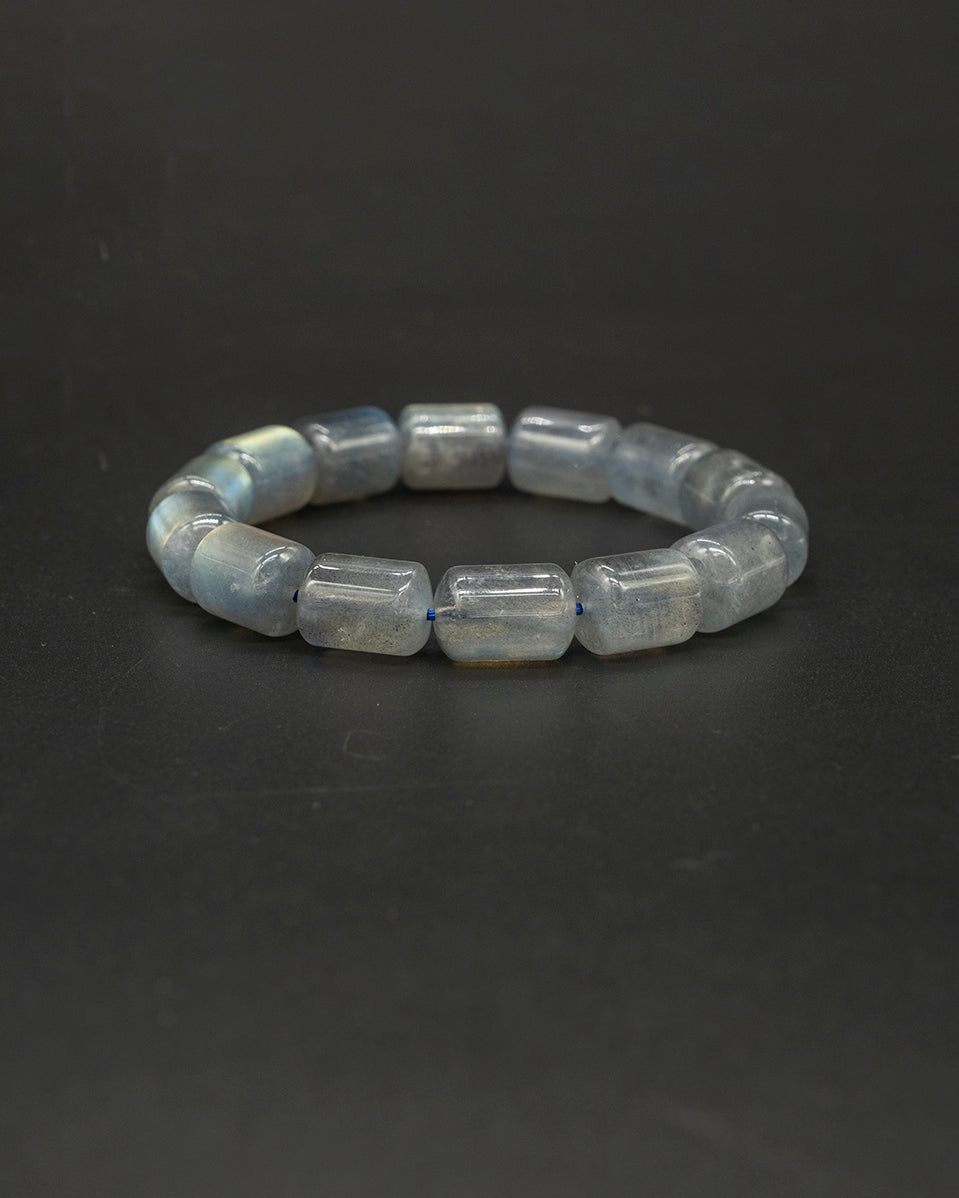 Natural labradorite beads strung on strong elastic for effortless wear. Each bead shows flashes of iridescent blue and green, highlighting the stone’s mystical beauty.