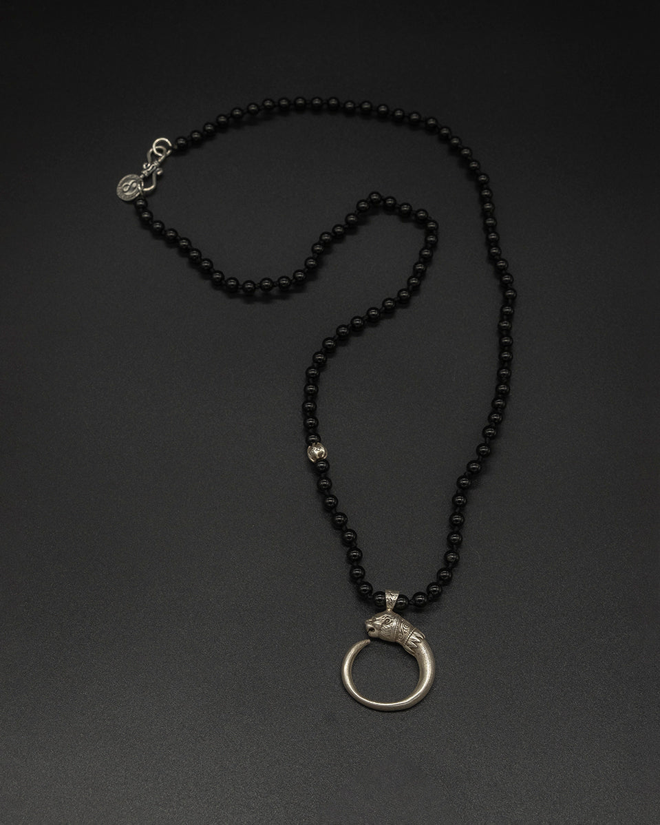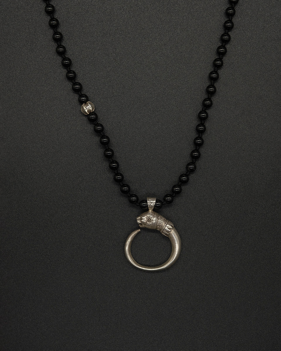 A mystical puma pendant crafted in silver and paired with natural black tourmaline. Symbolizing strength, protection, and grounding energy, this piece reflects inner power and spiritual balance.