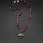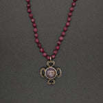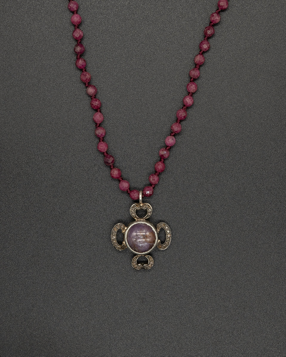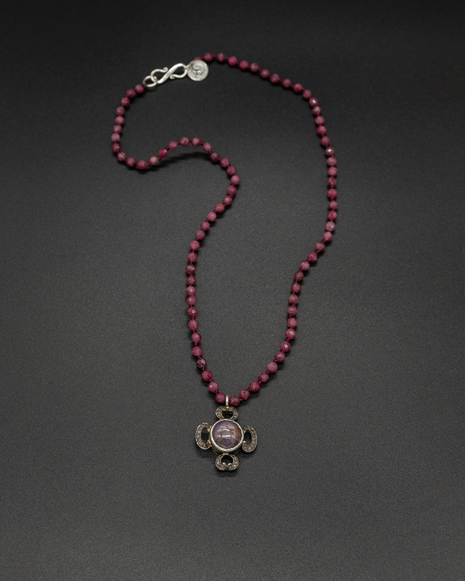This intricate necklace showcases the beauty of nature with a touch of elegance with a Burma purple sapphire and diamond flower pendant on a ruby stone chain.