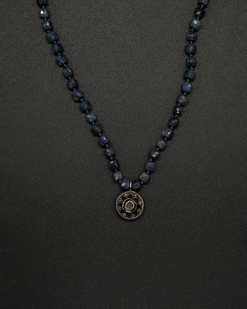 Embrace the protective energy of the sapphire necklace, featuring a diamond and silver on a sapphire chain. The deep blue hues of sapphire are said to shield their wearers from danger and jealousy, making it the perfect accessory for those seeking support and strength during challenging times.