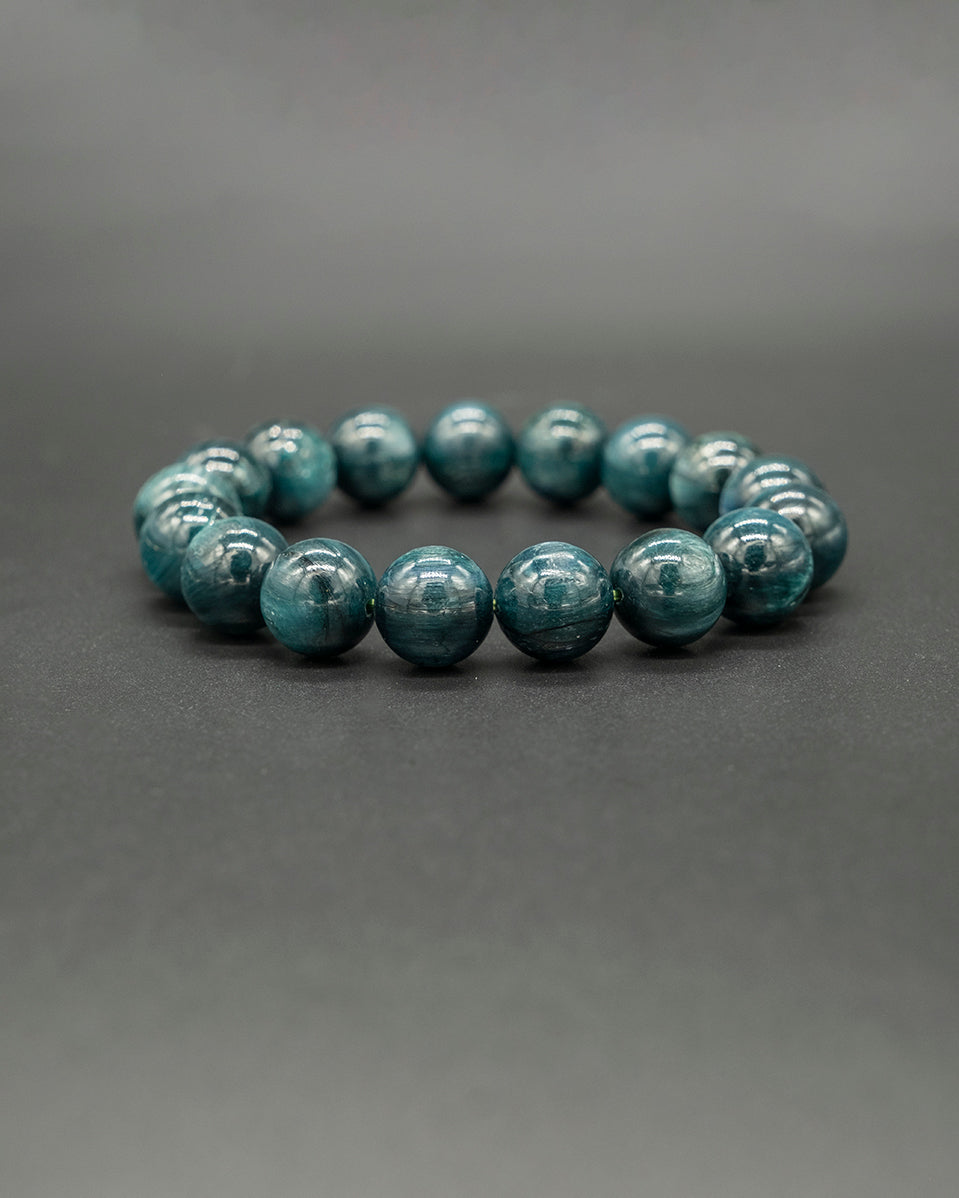 A smooth elastic bracelet featuring natural blue-green Kyanite 10mm, known for its calming, balancing energy. This stone supports clarity, alignment, and effortless flow—perfect for daily grounding and gentle protection.