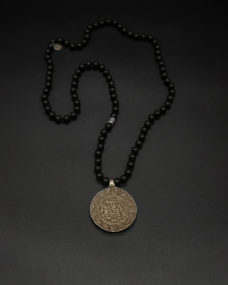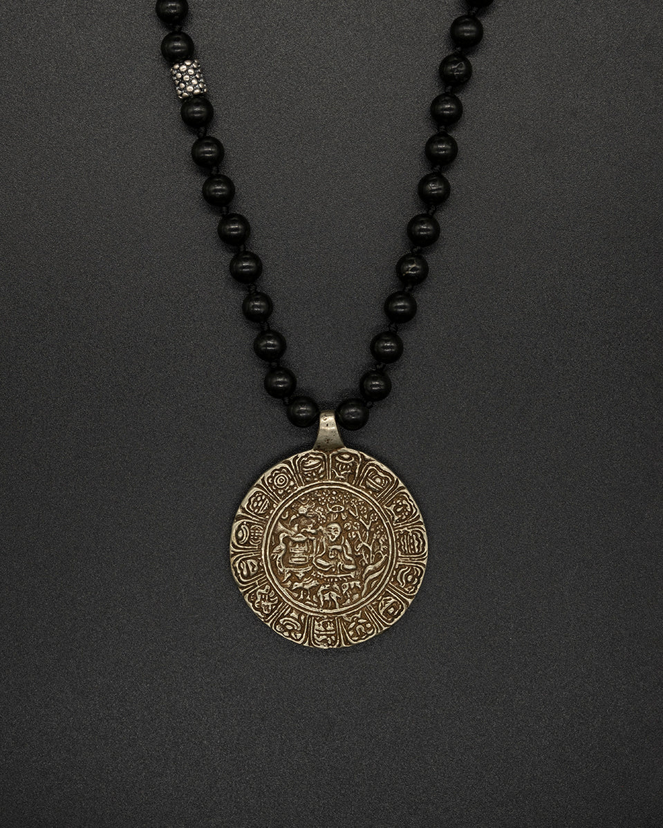 Add depth and meaning to your style with this vintage Buddha story pendant. Rich in symbolic detail, it is paired with a shungite chain, offering a grounded, timeless presence.