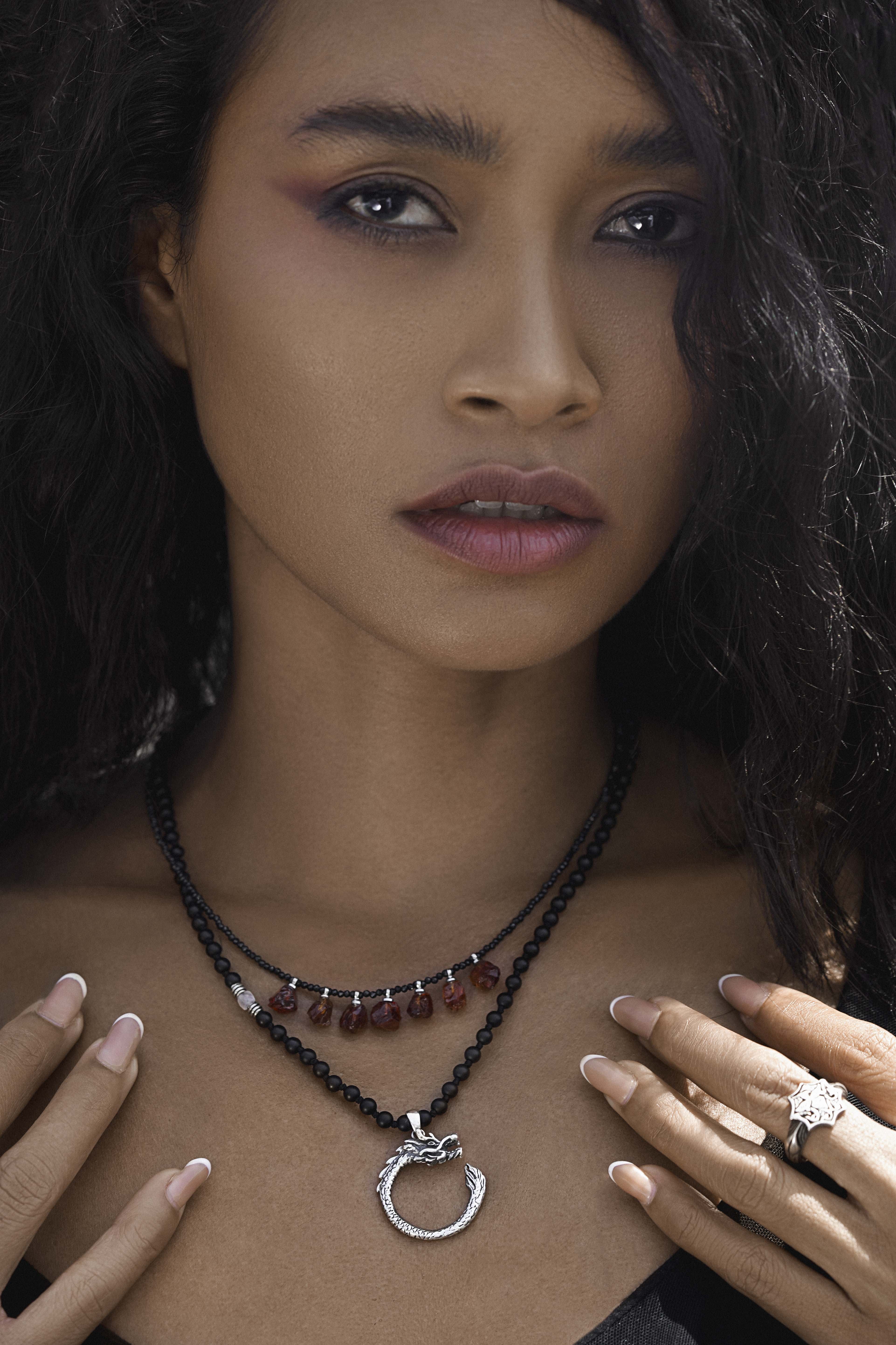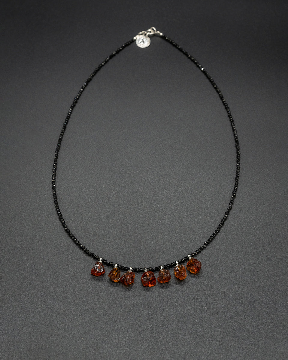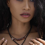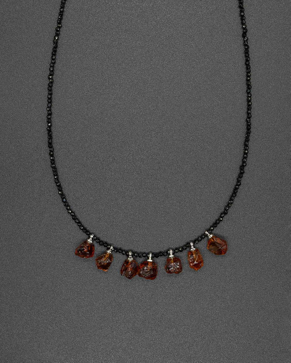 Featuring a row of raw garden quartz drops delicately centered on a hand-beaded black onyx necklace, this piece channels natural beauty. Let the vibrant energy of garden quartz rejuvenate your spirit, ignite your creativity, and help you tackle challenges with ease.
