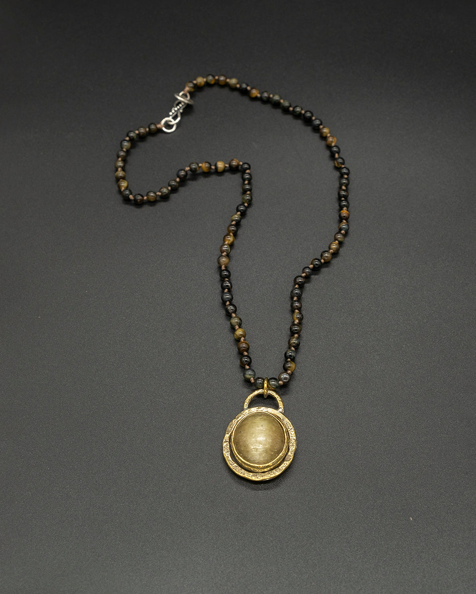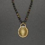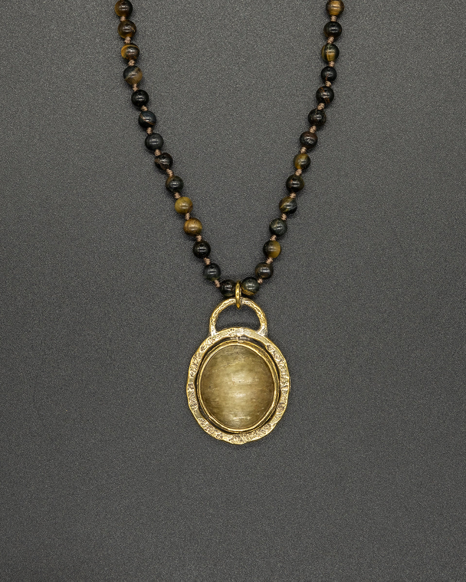 Yellow cat eye with tiger eye chain, glowing with warm golden hues and natural shimmer. A subtle yet striking piece that brings balance, confidence, and earthy elegance.