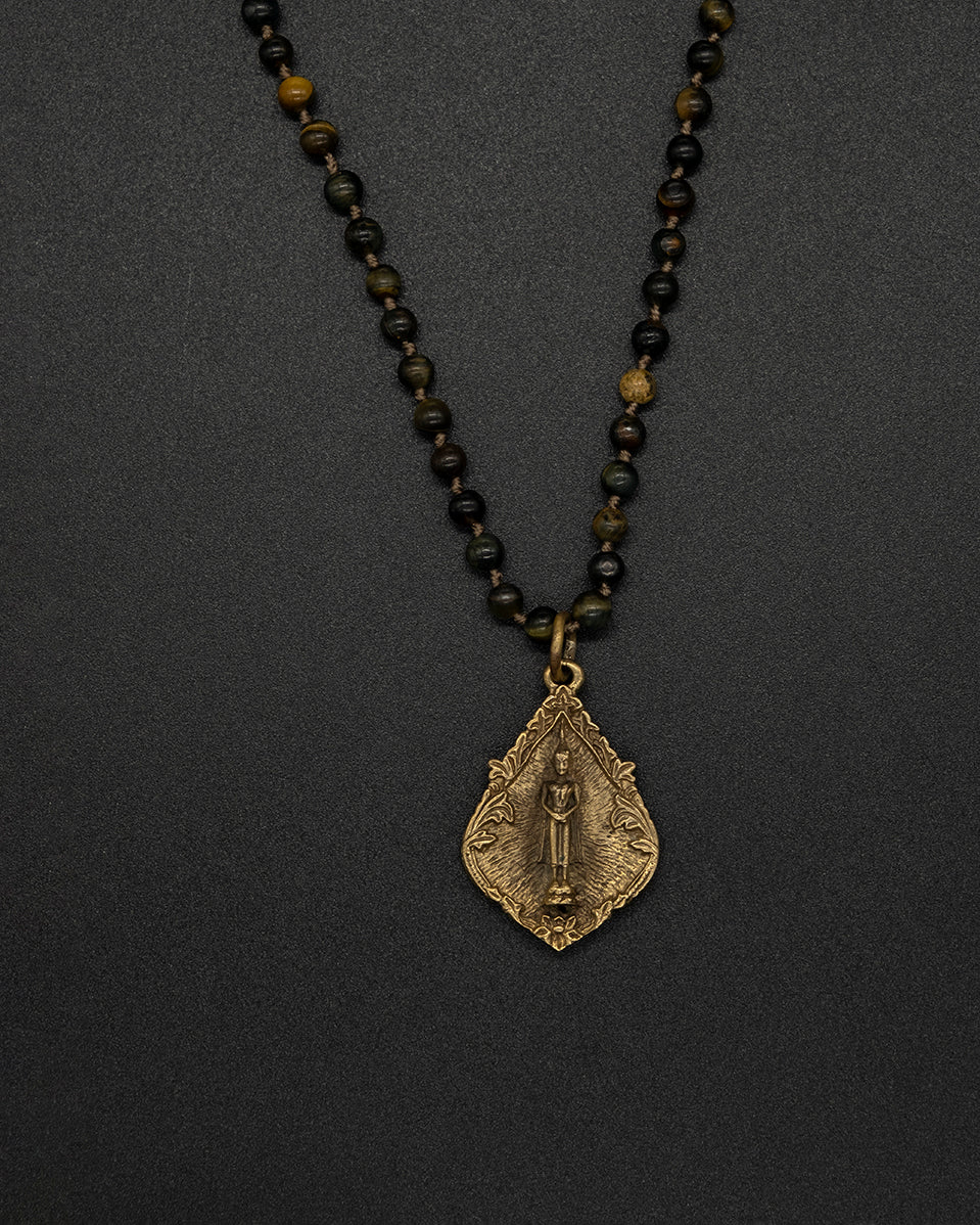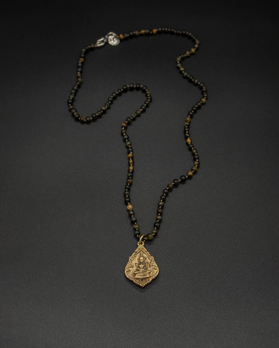 Add a gentle spiritual touch with this petite brass Buddha pendant. Paired with a tiger eye chain, it reflects warm golden hues, natural depth, and a serene, grounding energy.