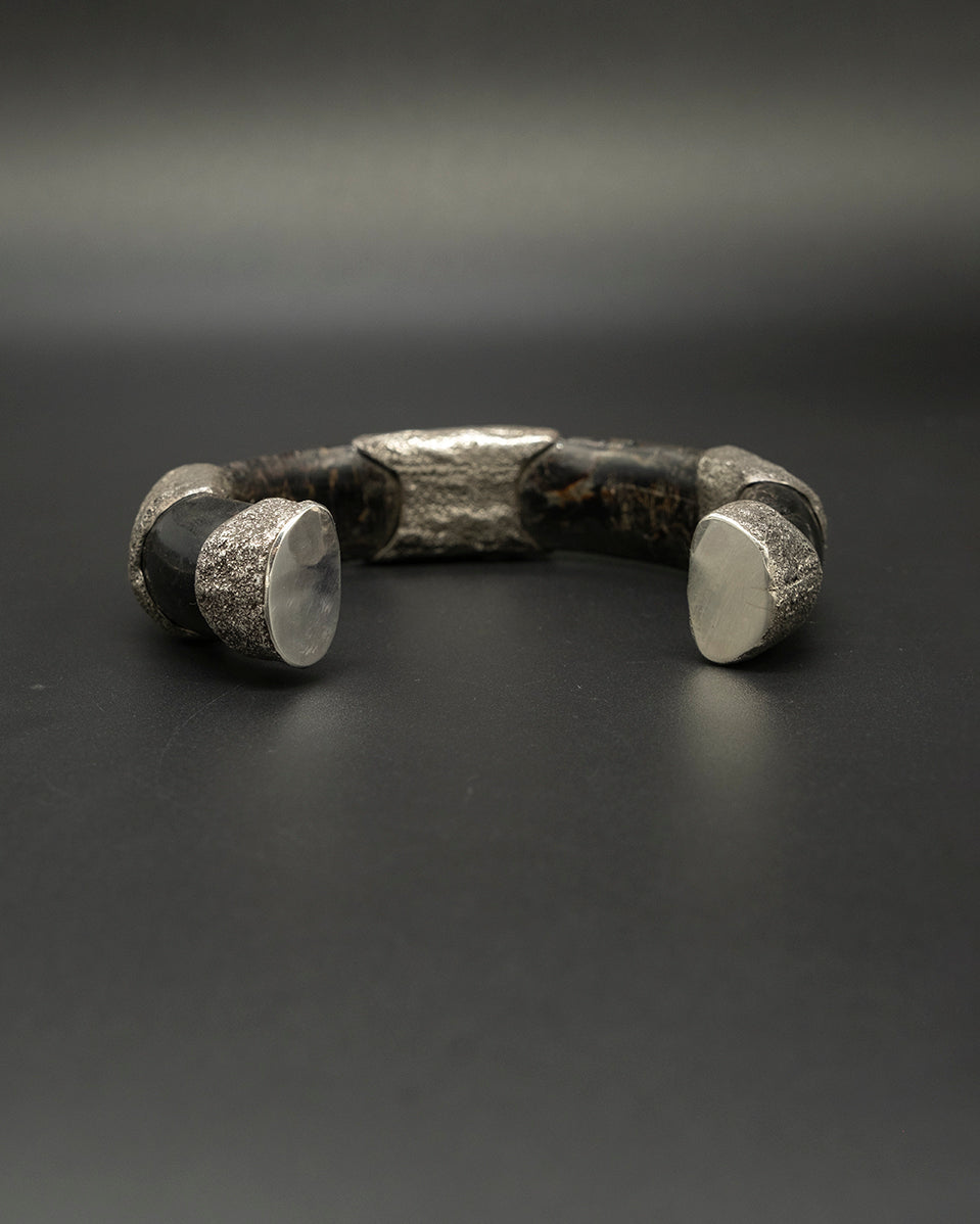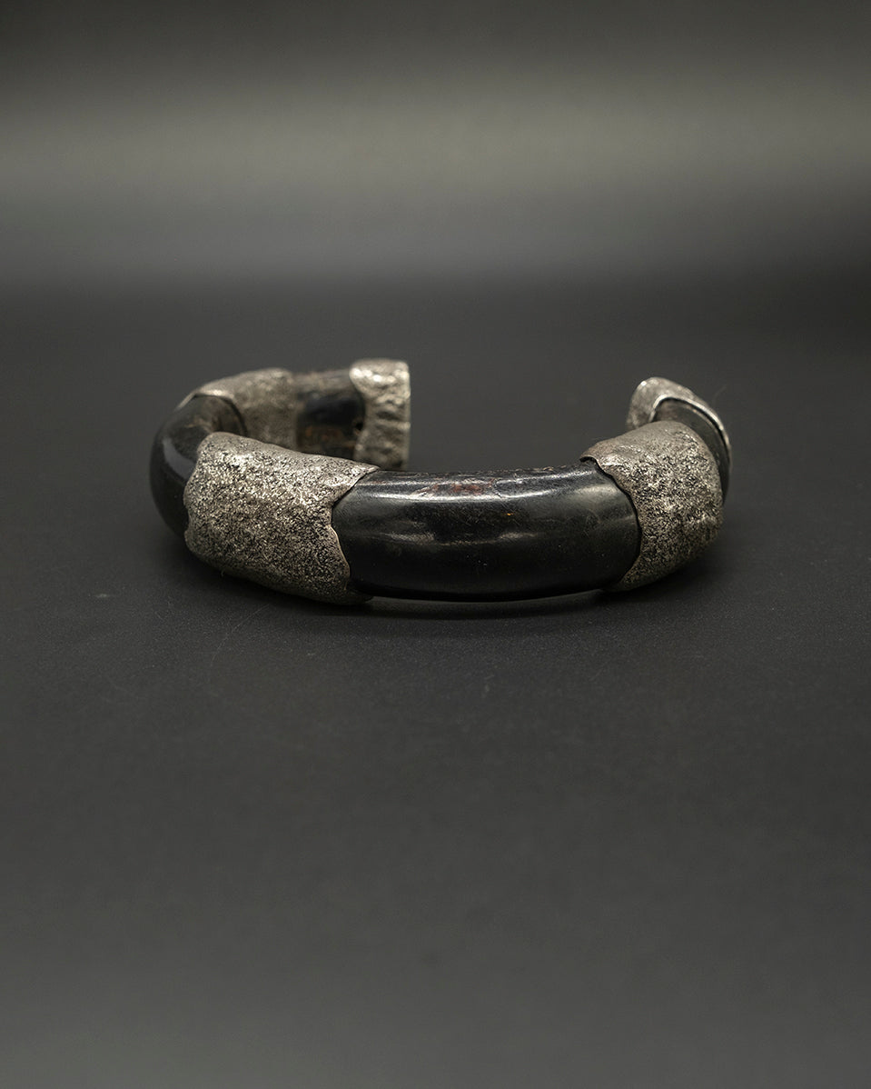 A striking contrast of deep black and radiant silver, this handcrafted bracelet carries a bold tribal spirit. Textured silver details wrap around the dark Uli accent, creating a piece that feels powerful, grounded, and timeless. Designed to stand alone or layer effortlessly with your favorites.