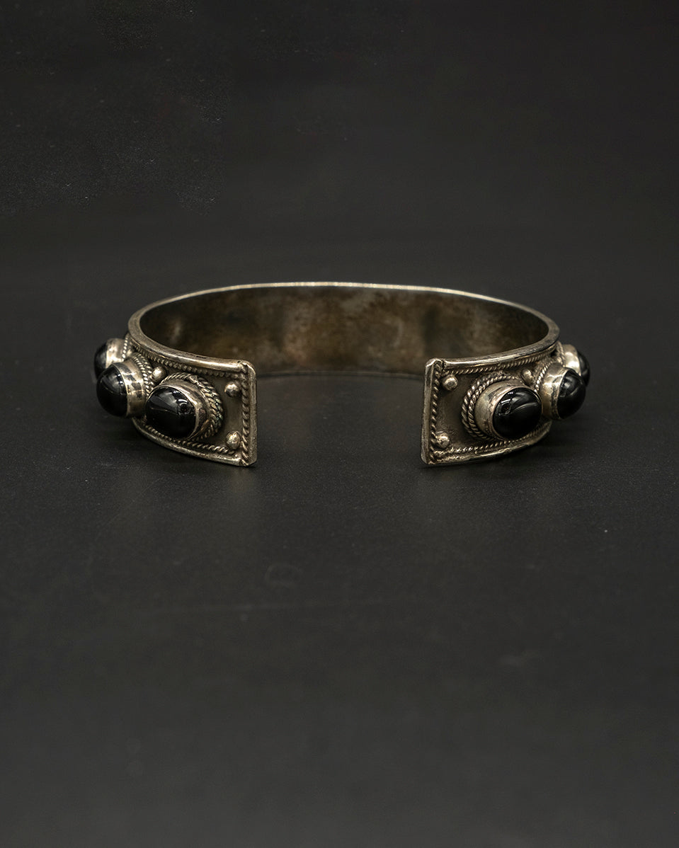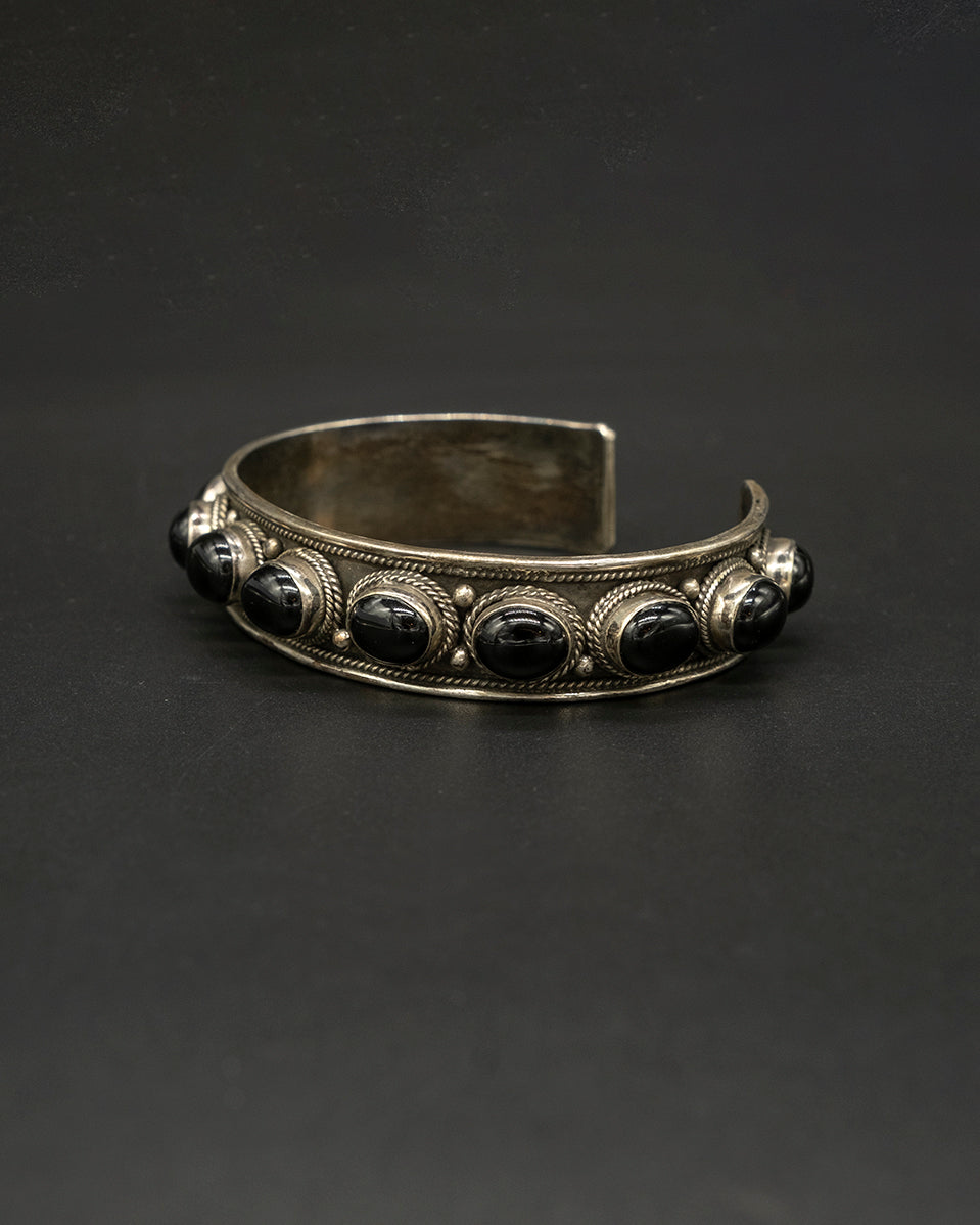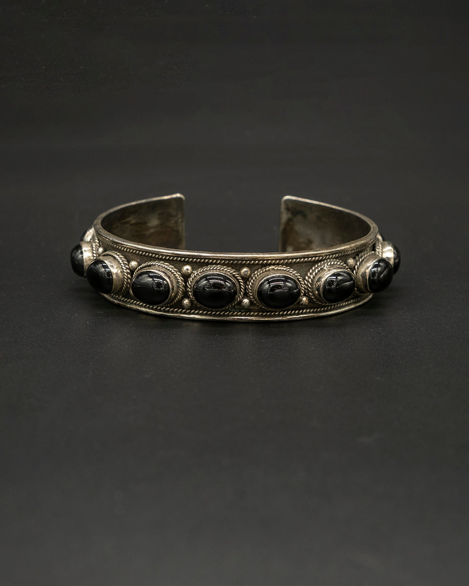Solid silver cuff featuring a polished black onyx stone. Bold, sleek, and handcrafted for a timeless look. Perfect for everyday wear or making a statement.