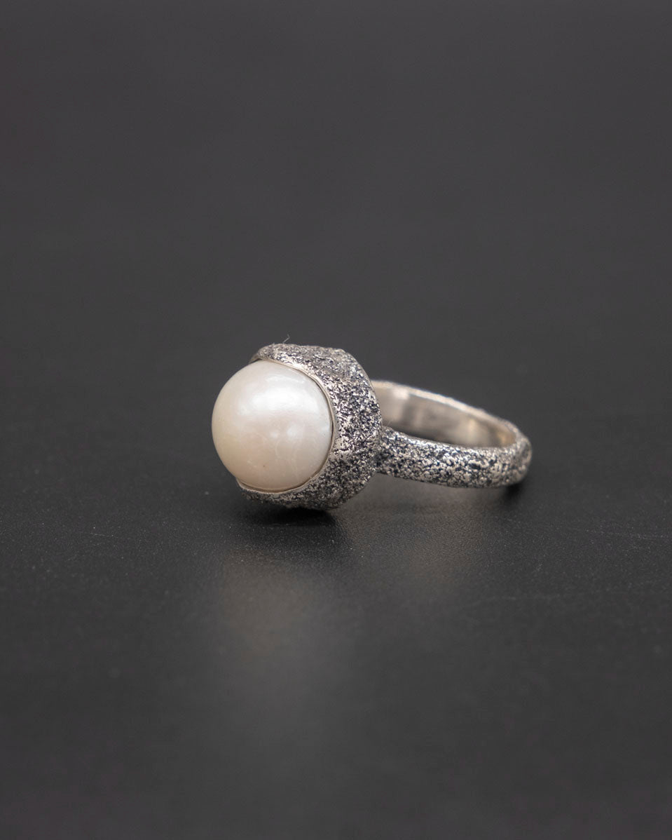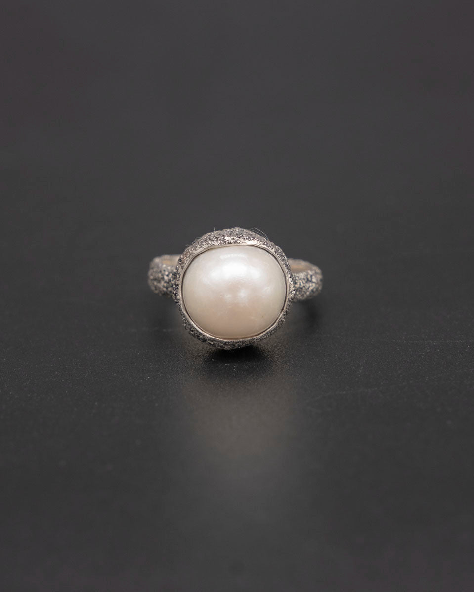 Embrace the enchanting allure of the night sky with our exquisite Purnima ring. Handcrafted with care, this stunning ring features a luminous South Sea pearl set in a delicate silver-dusted band, capturing the essence of a full moon's glow. Adorn your fingers with this radiant treasure and let your elegance shine through.