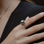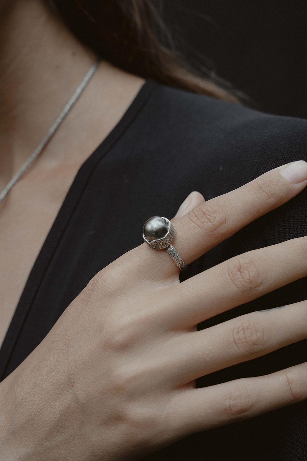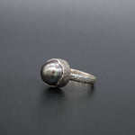 This exquisite ring is made with a delicate sterling silver band, entwined with the luminescent round Tahitian pearl. Drawing its beauty from the sea depths, this shining crown jewel will make you feel as majestic and regal as any royal.