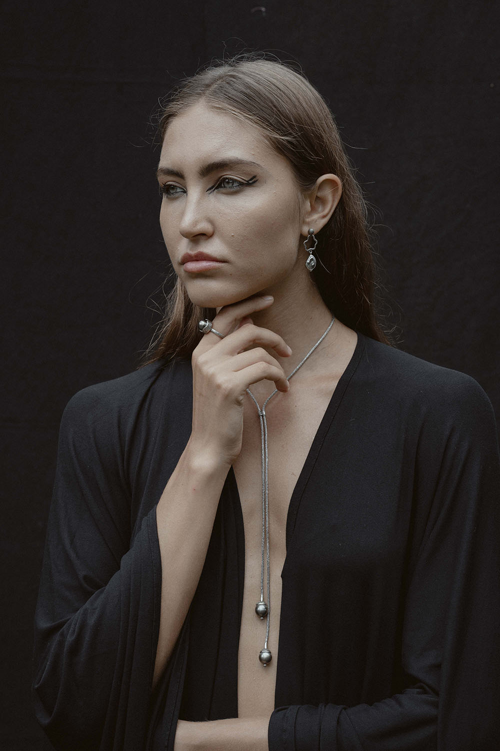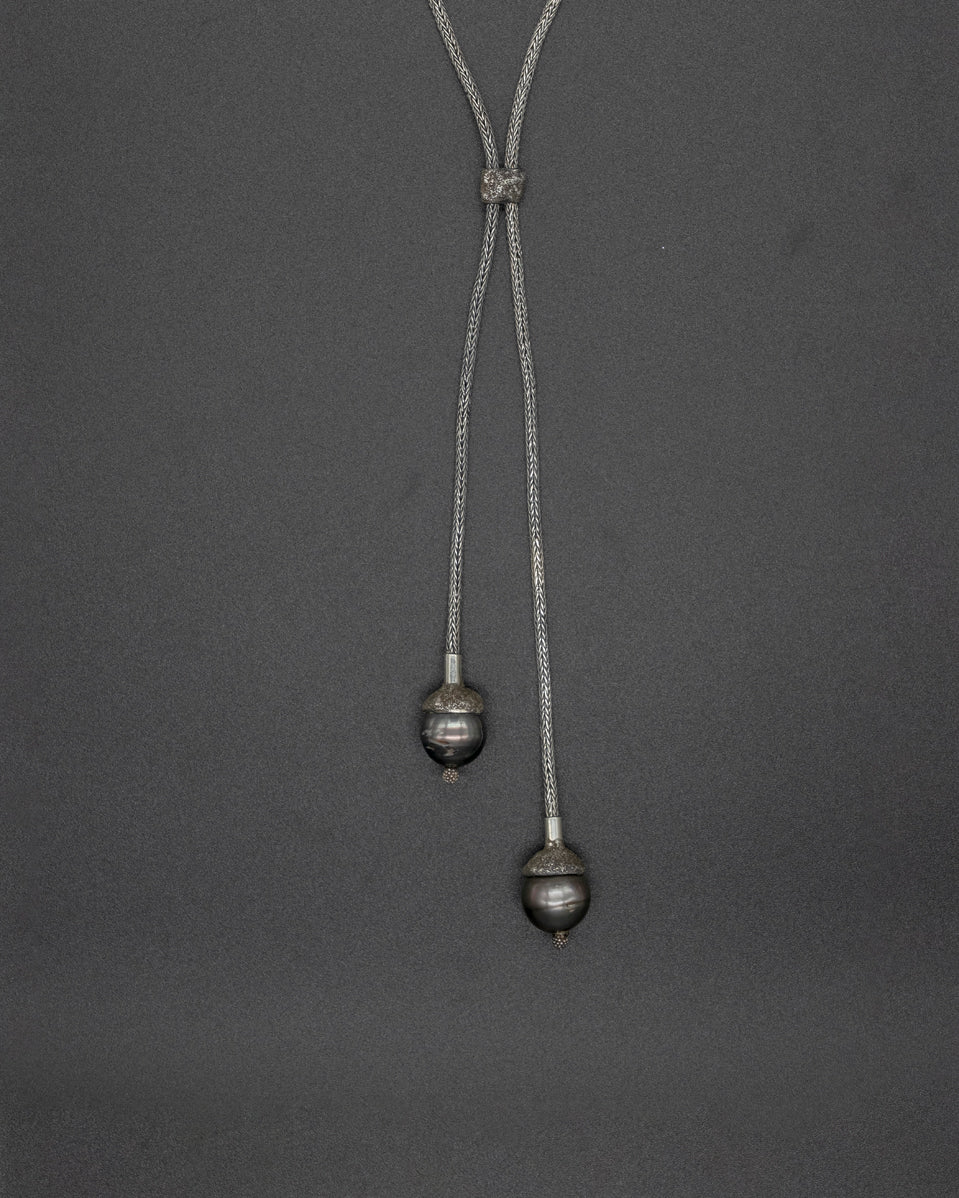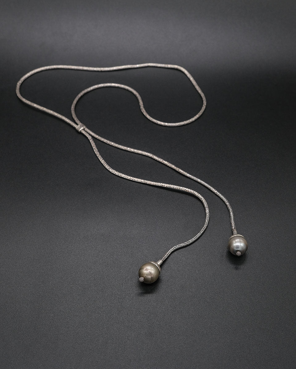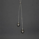 Tilam Drop brings you a timeless piece of beauty - this exquisite silver lariat-style necklace is designed with dark Tahitian pearls. Crafted to perfection, this luxury piece is a symbol of elegant simplicity.