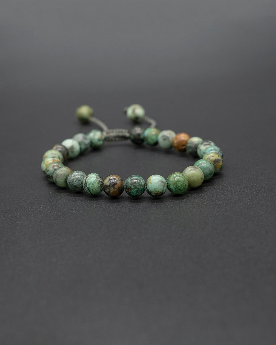 Smooth 6mm African turquoise beads bringing grounding energy and fresh clarity, finished with an adjustable cord for a relaxed, comfortable fit.