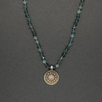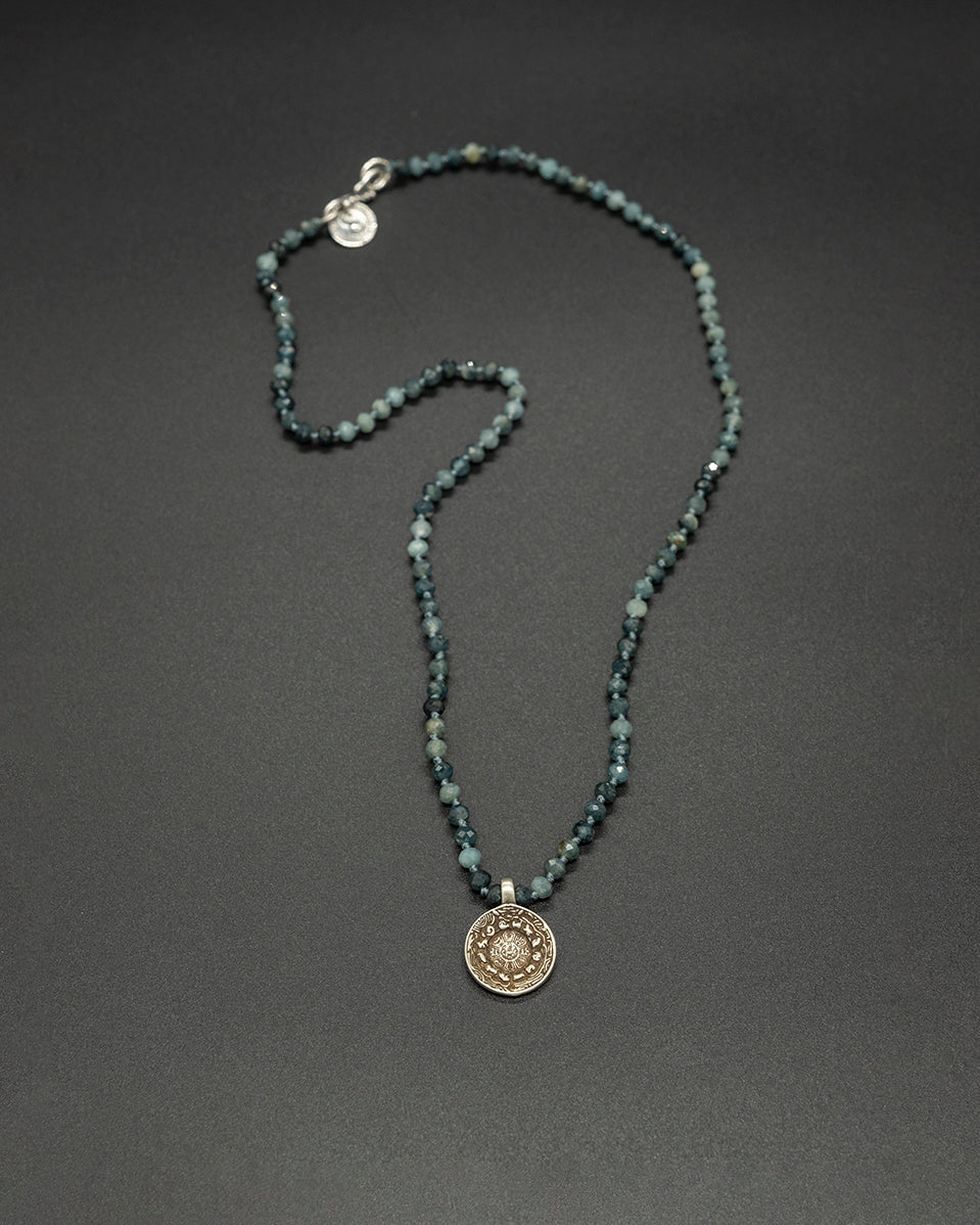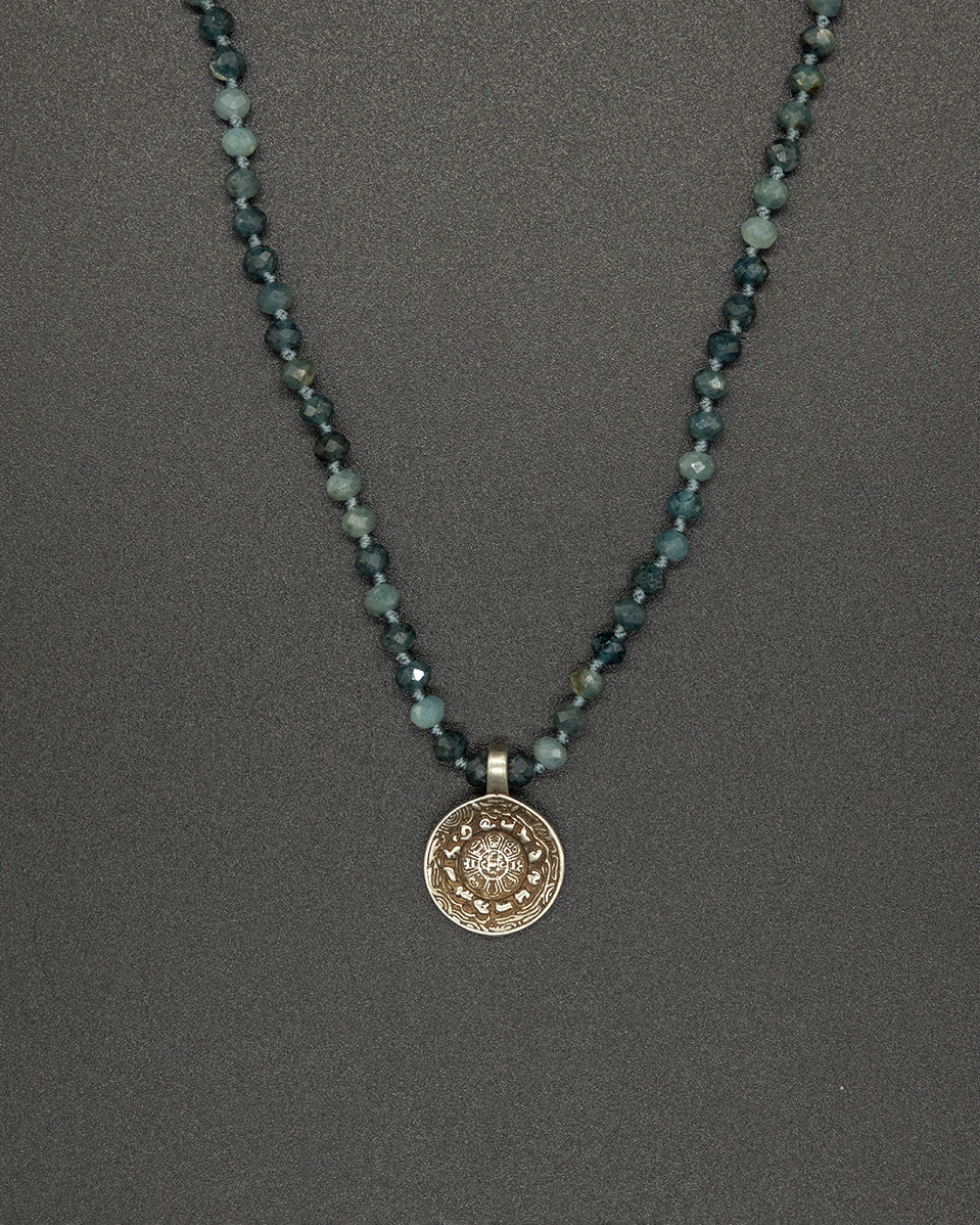 Discover the history of our Silver Tibetan Zodiac Pendant, beautifully complemented by a stunning blue tourmaline chain. This unique piece features the intricate designs of the Tibetan zodiac, a fascinating system of 12 animals that symbolize various time periods.