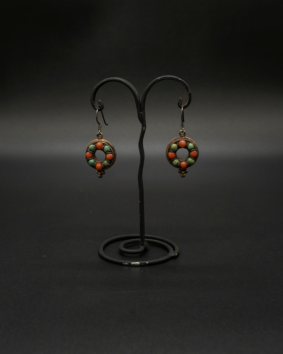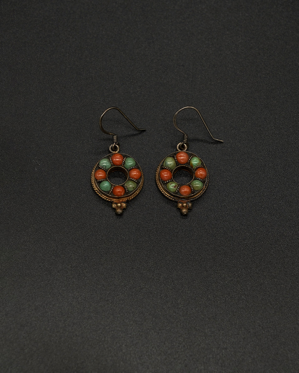 Vintage-style silver earrings featuring coral and turquoise accents. Coral is traditionally associated with vitality and protection, while turquoise is believed to bring balance, healing, and good fortune. Rich in color and character, this pair reflects classic craftsmanship with timeless, earthy symbolism.