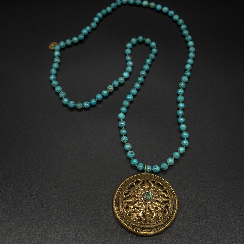 As a talisman of kings, shamans, and warriors, turquoise resonates with power, luck, wisdom, and peace. Turquoise is highly regarded by many Native Americans, who carve it into the shapes of animals and birds. These carvings were placed in graves as a means of luring good spirits and guarding the departed. Turquoise was used as a medicinal stone by the indigenous people. In Iran, turquoise is known as "Ferozah," the nation's state gem and a symbol of victory.  It has been mined for more than 5000 years in Iran. Persian legend states seeing the new moon's reflection, either on the face of a friend or on a turquoise item, is said to ward off evil and bring good fortune.