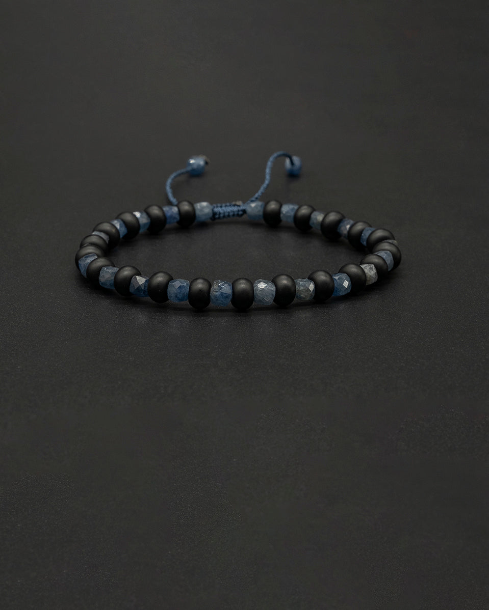 Feel the rawness of this sapphire onyx bracelet. Not only does the combination of raw faceted sapphire beads and onyx beads look exquisite, but the adjustable closure ensures a comfortable and perfect fit.
