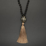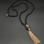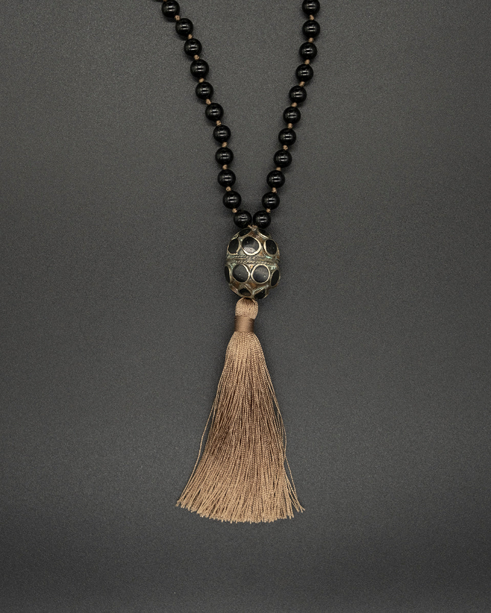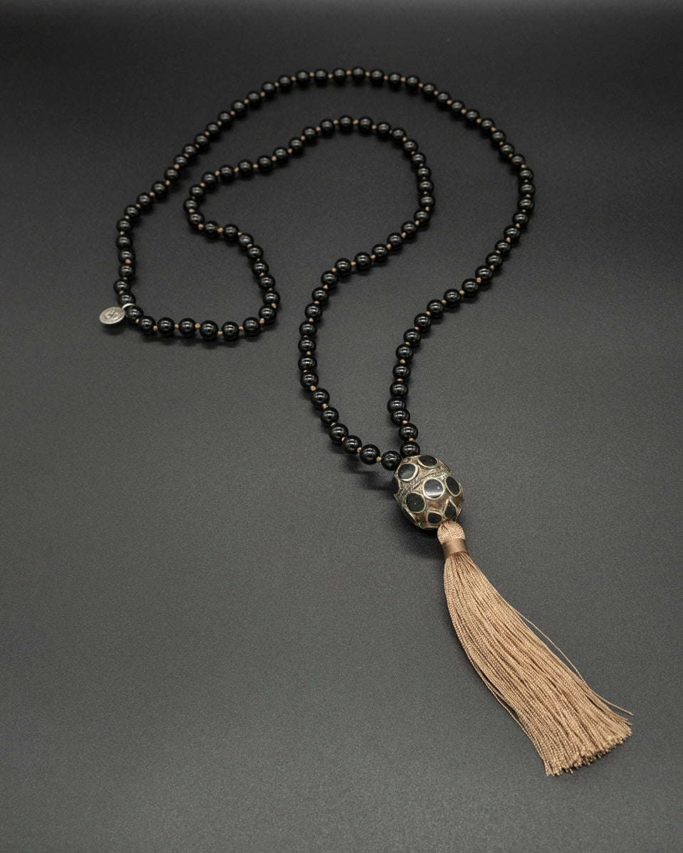 Vintage Enameled Guru Bead paired with a 108 Black Tourmaline chain — a powerful mala that grounds and protects, combining vintage artistry with the strong, purifying energy of tourmaline to promote balance, focus, and inner strength.