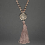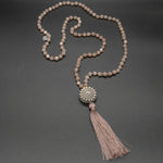Adorned with 108 peach moonstone beads and a silver Indian guru bead, this mala embodies feminine energy, intuition, and emotional balance. The gentle shimmer of moonstone reflects tranquility and inner harmony, while the silver guru bead adds a touch of sacred elegance — a perfect companion for meditation or everyday serenity.
