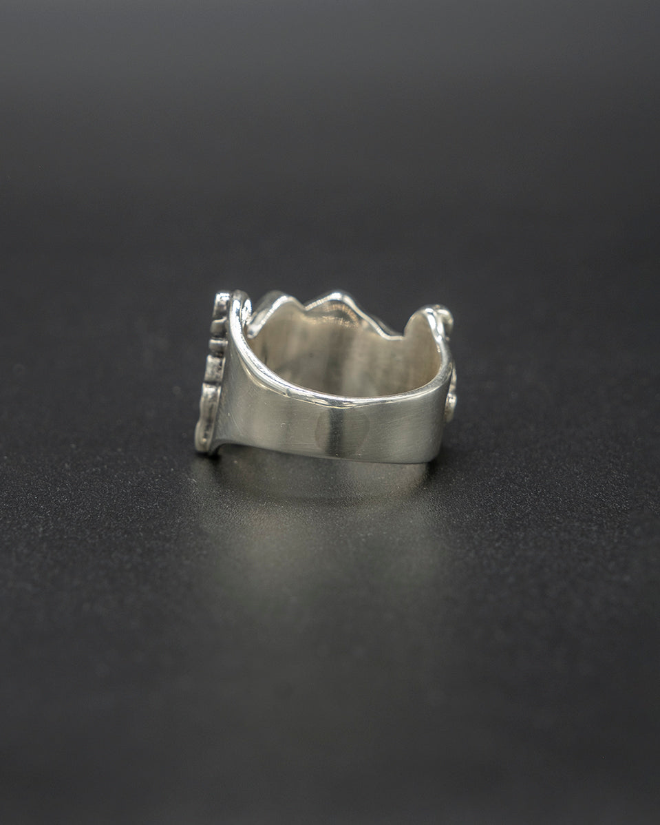 Seek harmony and balance in your life with our stunning Om Mani silver ring. This piece carries the Om Mani Padme Hum symbol, reflecting the heart of Buddha's teachings.