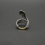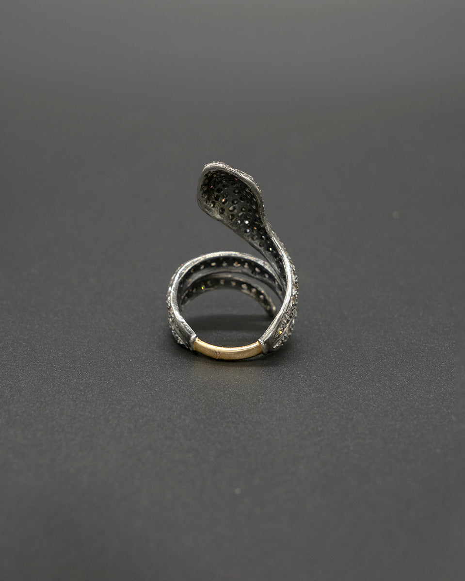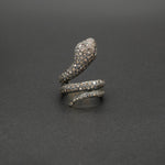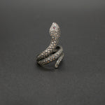 A sleek serpent coils gracefully around the finger, its head accented with a sparkling diamond and a vivid ruby eye. Set on a smooth gold-plated band, this ring blends mystique and elegance—symbolic, alluring, and beautifully crafted with a touch of ancient charm.