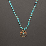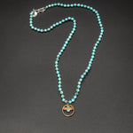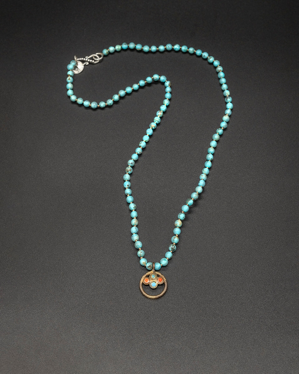 This piece features a harmonious blend of vintage brass, natural turquoise, and coral, gracefully arranged along an Arizona turquoise chain. Rich in earthy tones and artisanal character, it carries a timeless tribal elegance—perfect for everyday wear or meaningful layering.