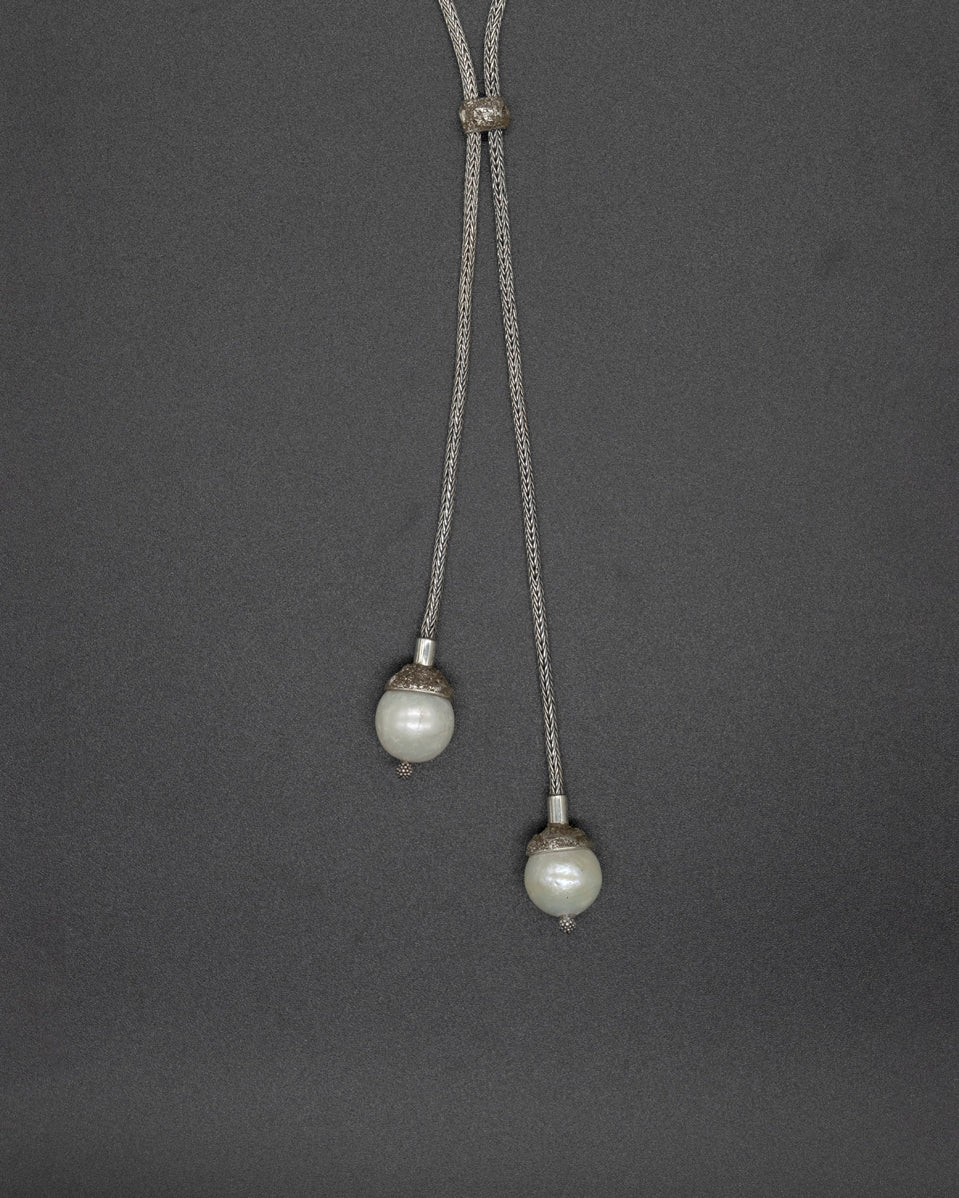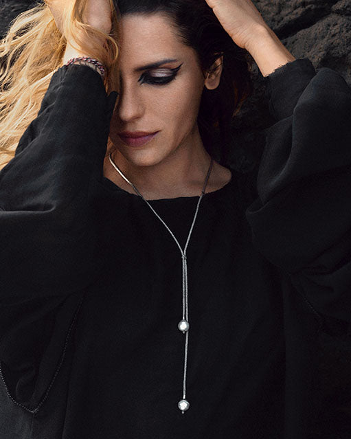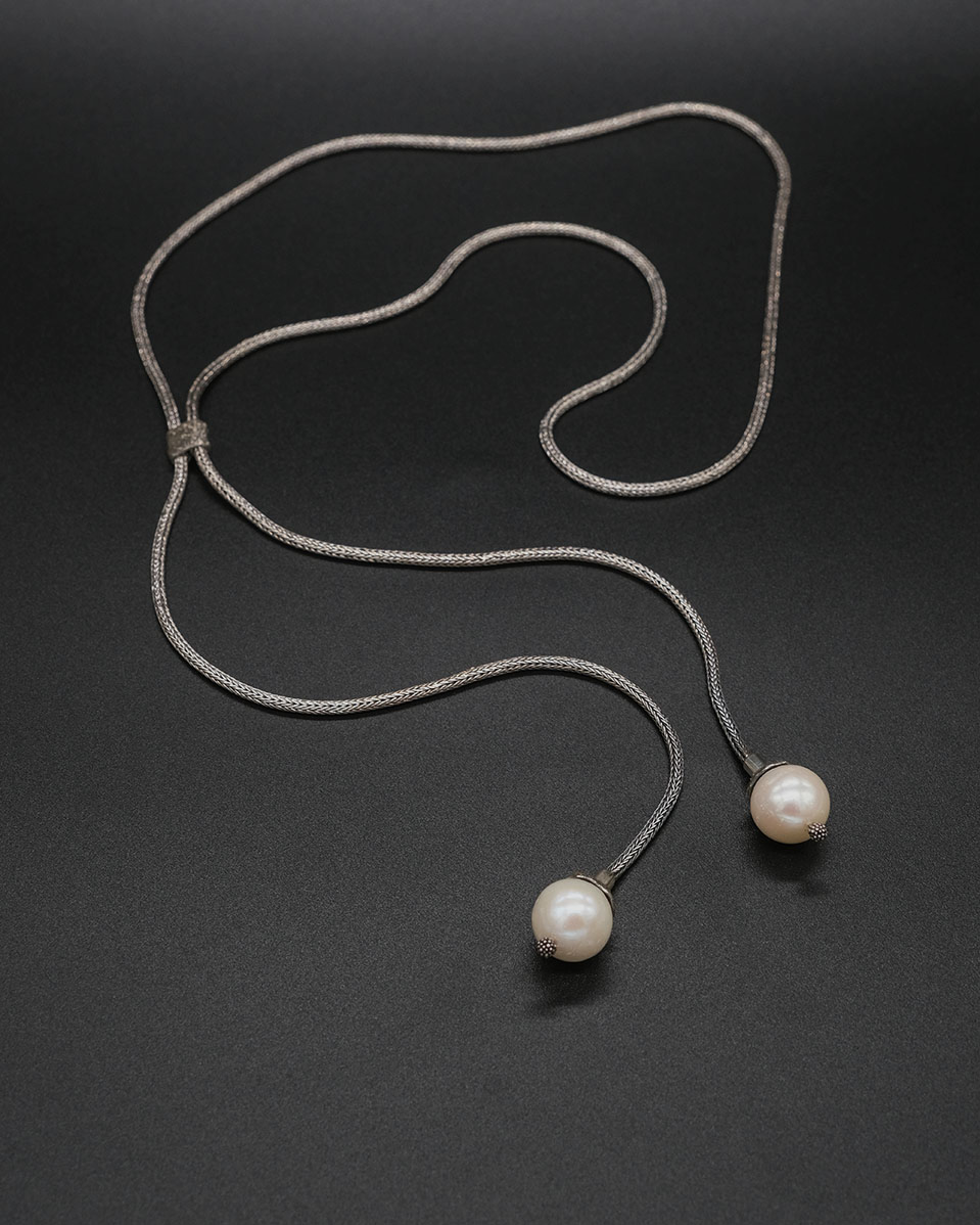 A beautiful necklace crafted to make you shine like the night of the full moon – Purnima. This exquisite lariat-style necklace is made with Japanese freshwater pearls and symbolizes elegance and refreshing simplicity.