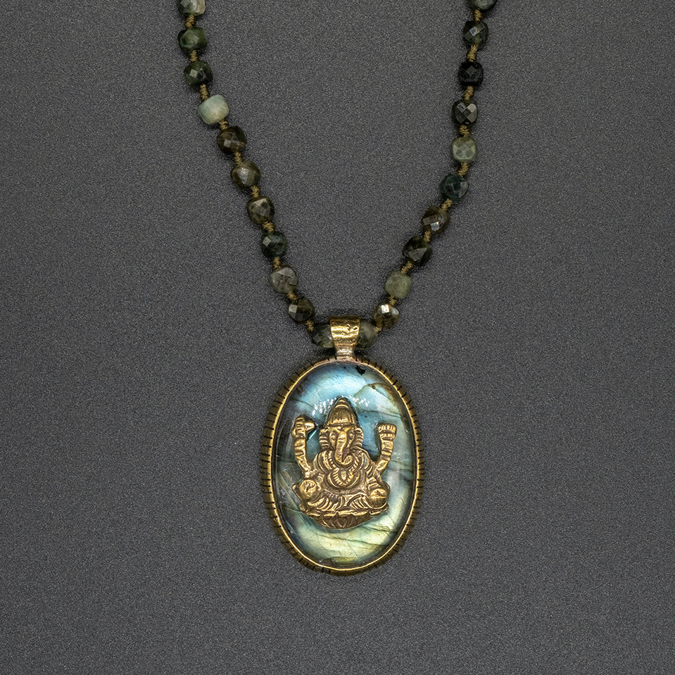 Brass Labradorite Ganesha
